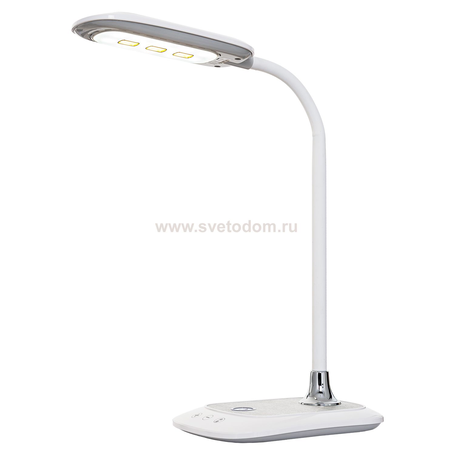 Настольная светодиодная лампа BL1328 SILVER от бренда Gerhort. Каркас выполнен из материала пластик, цвет белый. Плафон (светорассеиватель) выполнен из материала пластик, цвет серебро. Встроенные LED модули на 6 Вт осветят до 1 м?. Есть регулировка цветовой температуры и яркости с помощью выключателя.