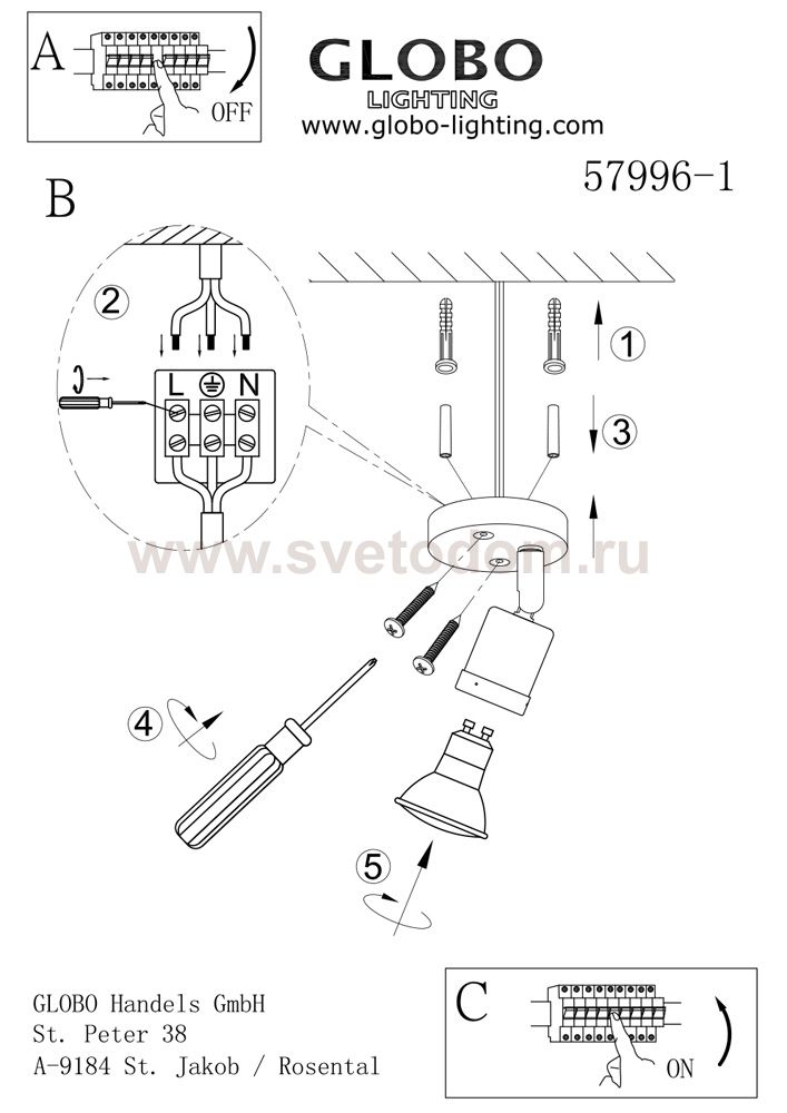 Светильники-споты – это оригинальные изделия с современным дизайном. Они позволяют не ограничивать свою фантазию при выборе освещения для интерьера. Такие модели обеспечивают достаточно качественный свет. Благодаря компактным размерам Вы можете использовать несколько спотов для одного помещения. Интернет-магазин «Светодом» предлагает необычный светильник-спот Globo 57996-1 по привлекательной цене. Эта модель станет отличным дополнением к люстре, выполненной в том же стиле. Перед оформлением заказа изучите характеристики изделия. Купить светильник-спот Globo 57996-1 в нашем онлайн-магазине Вы можете либо с помощью формы на сайте, либо по указанным выше телефонам. Обратите внимание, что у нас склады не только в Москве и Екатеринбурге, но и других городах России.
