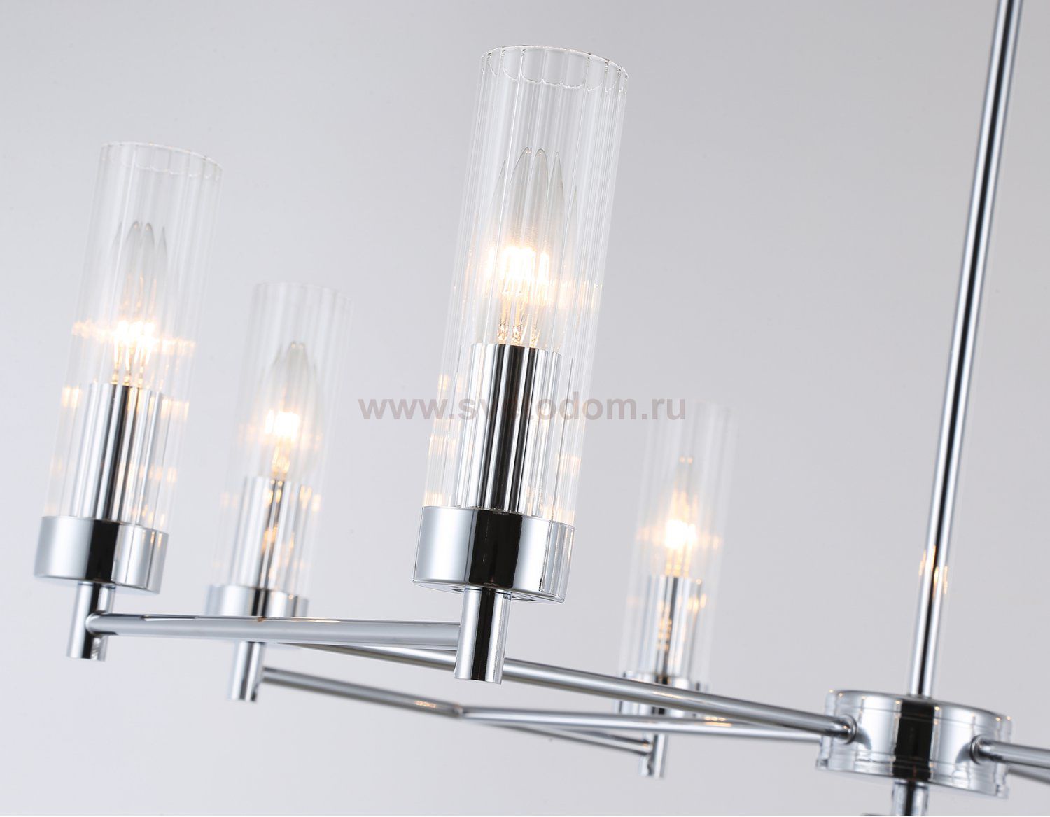 Подвесная люстра из коллекции HIGH LIGHT. Модель LH55152 представлена в стиле неоклассика. Люстра выполнена из металлического каркаса цвета хром и стеклянных прозрачных плафонов. Для данной модели подойдут лампы с цоколем Е14. Люстра будет прекрасным дополнением в любом помещении.