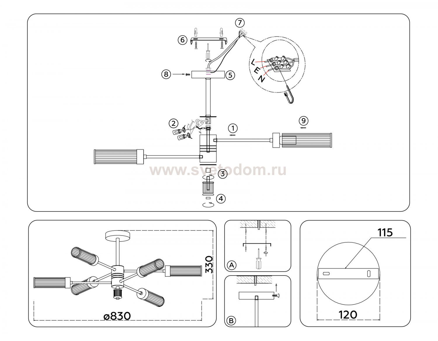 ![]() Люстра на штанге Ambrella LH55258/9 BK/BS/CL черный/латунь/прозрачный E14*9 max 40W D770*530 19990 руб.