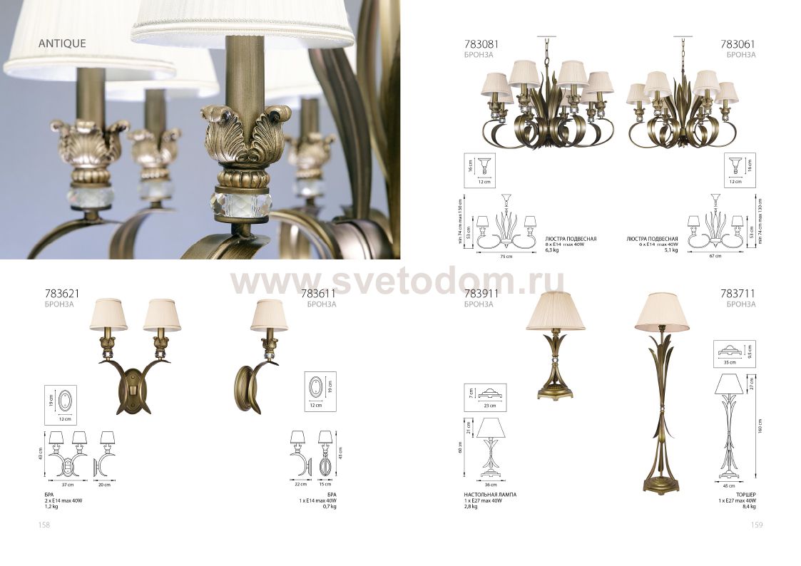 Коллекция светильников Antique уникальна своим античным стилем. Абажуры из нежного шелка, будто распустившиеся бутоны на бронзовом цветке. Хрустальные кристаллы украшают каждую ножку светильника. Они обработаны мастерами вручную, что позволило избежать бракованной огранки или трещин в теле хрусталика. Свет от таких светильников может варьироваться от теплого до белого, в зависимости от лампы и предпочтений.