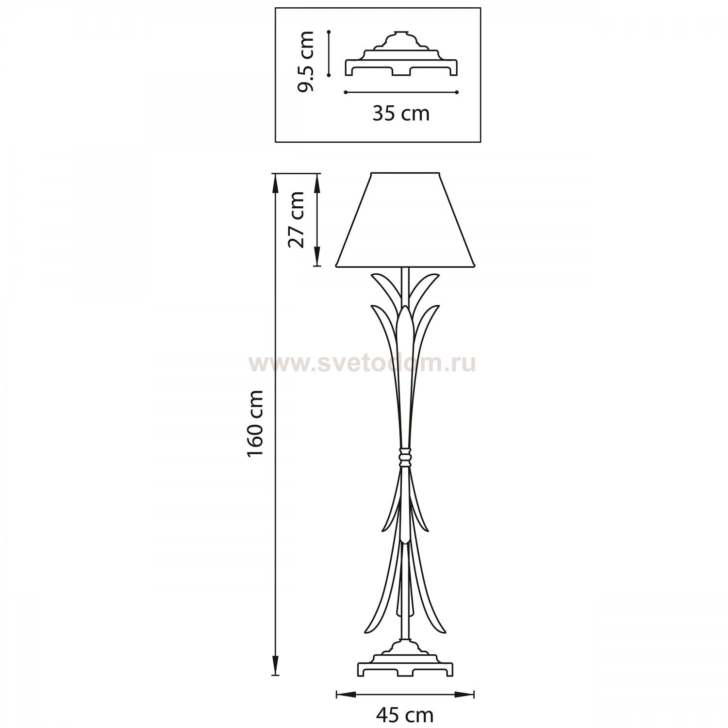 Высота min-max (см): 160; Ширина (см): 45; Вес (кг): 8,4; Кол-во ламп: 1xE27; Мощность max (W): 60; Цвет основания/цвет стекла или абажура: БРОНЗА/Слоновая кость;