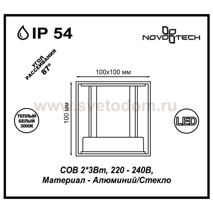 корпус - алюминий, рассеиватель - стекло Материал плафона