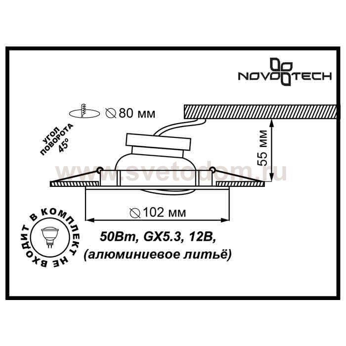 Стандартный встраиваемый поворотный светильник Артикул производителя