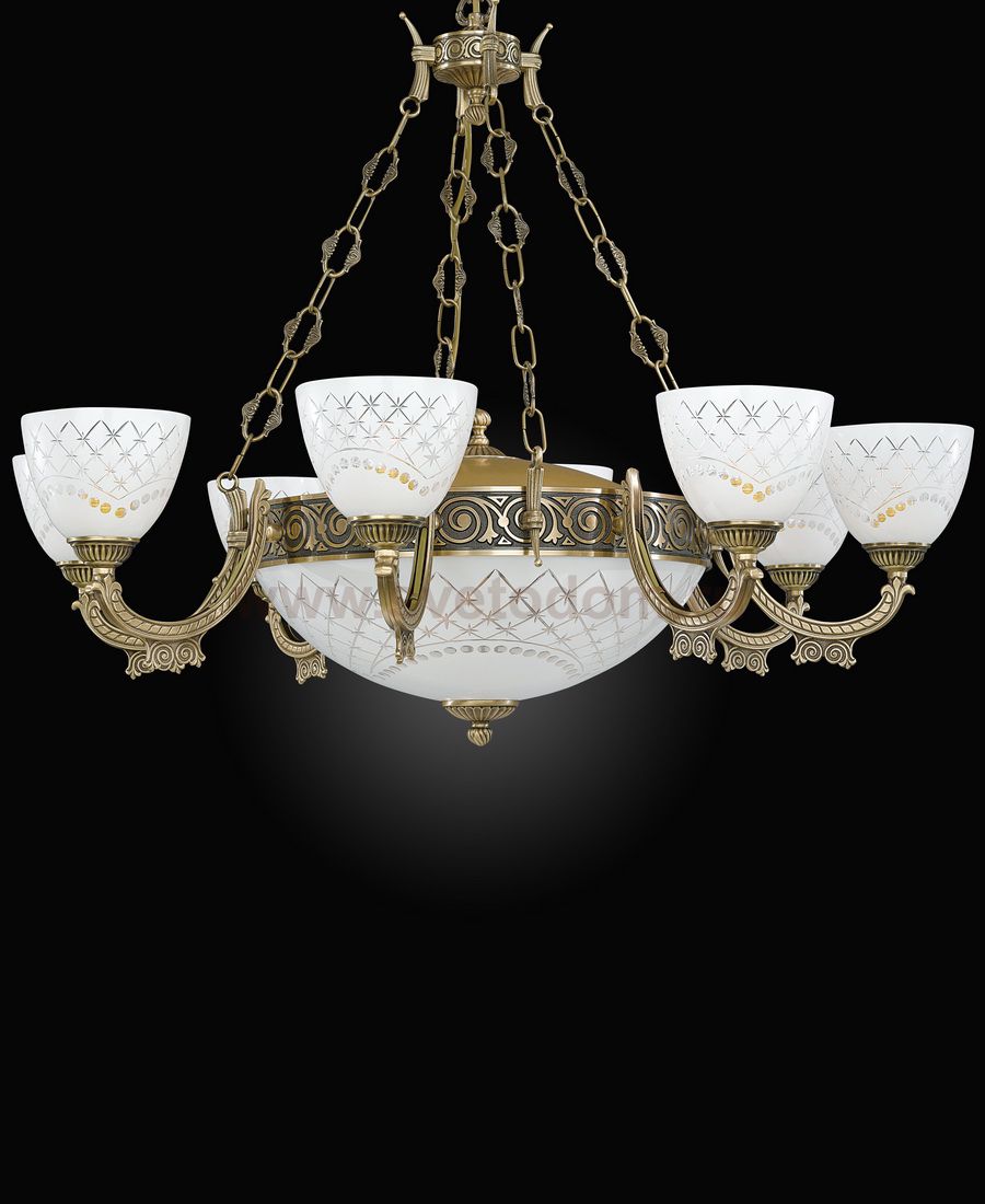 Классическая люстра производства итальянской фабрики Reccagni Angelo. Три лампы располагаются в центральном плафоне, остальные - по радиусу.