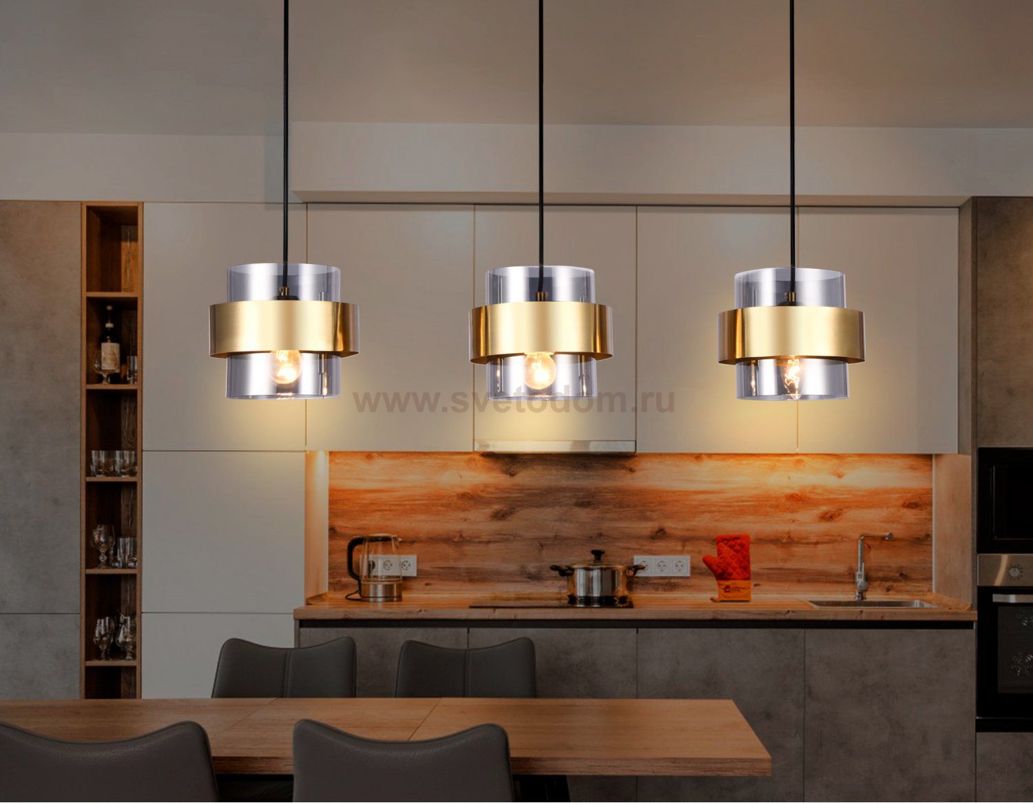 Подвесной светильник из коллекции TRADITIONAL. Модель TR3652 представлена в современном стиле неоклассика. Светильник выполнен из трех стреклянных дымчатых плафонов, каркас изготовлен из металла золотого цвета. Для данной модели подойдут лампы с цоколем Е27. Светильник будет прекрасным дополнением в любом помещении.