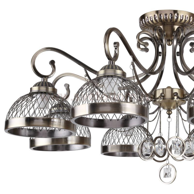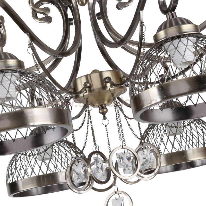Люстра потолочная 1005/05/08P Stilfort серии Lori выполнена в стиле лофт. Люстра полностью иготовлена из металла в цвете "античная бронза". Плафоны имеют сетчатую конструкцию. |