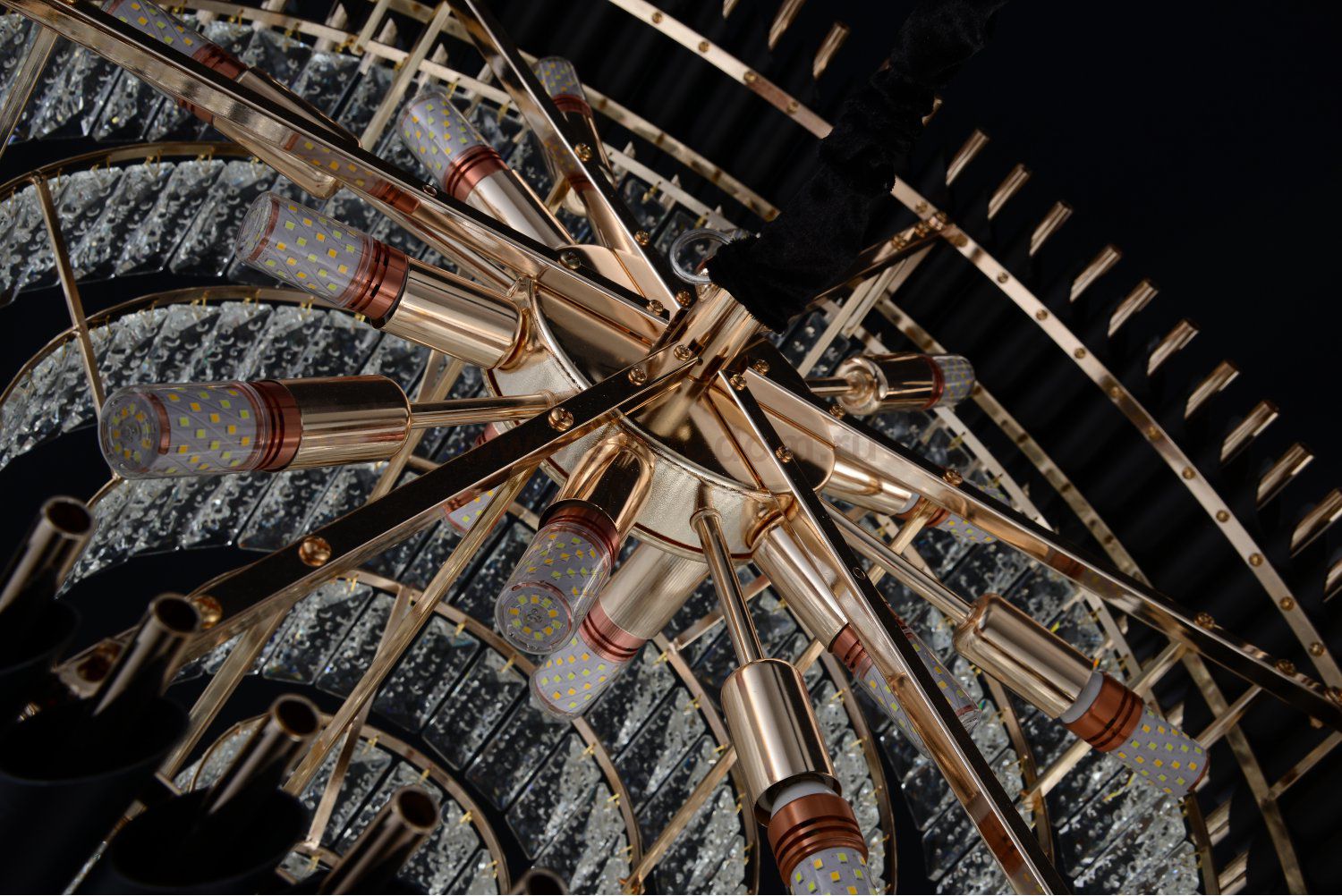 Люстра подвесная хрустальная 1020/03/15P Stilfort, серия Nixxa, цвет арматуры- золото и черный, цвет плафонов - без плафонов, лампы - 15*E14*40W, материал арматуры - металл, материал плафонов - без плафонов