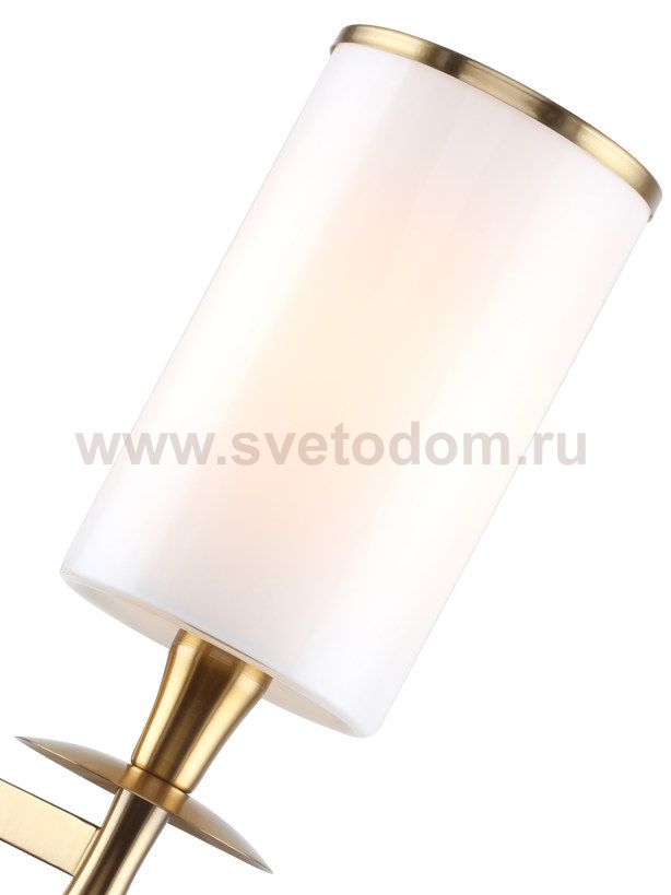 Светильник настенный 1047/05/01W Stilfort серии Leader выполнен в классическом стиле. Арматура изготовлена из окрашенного металла в цветовом исполнении "золото". Плафон стеклянный, белый с золотистым ободком.