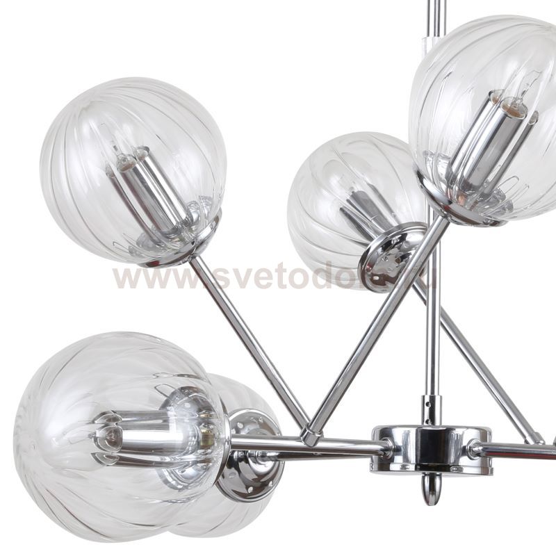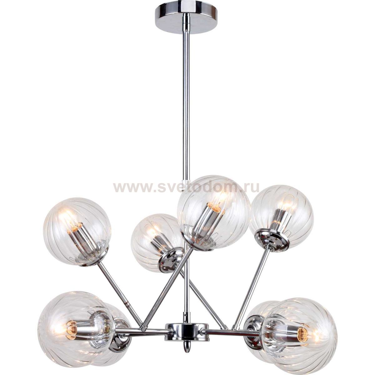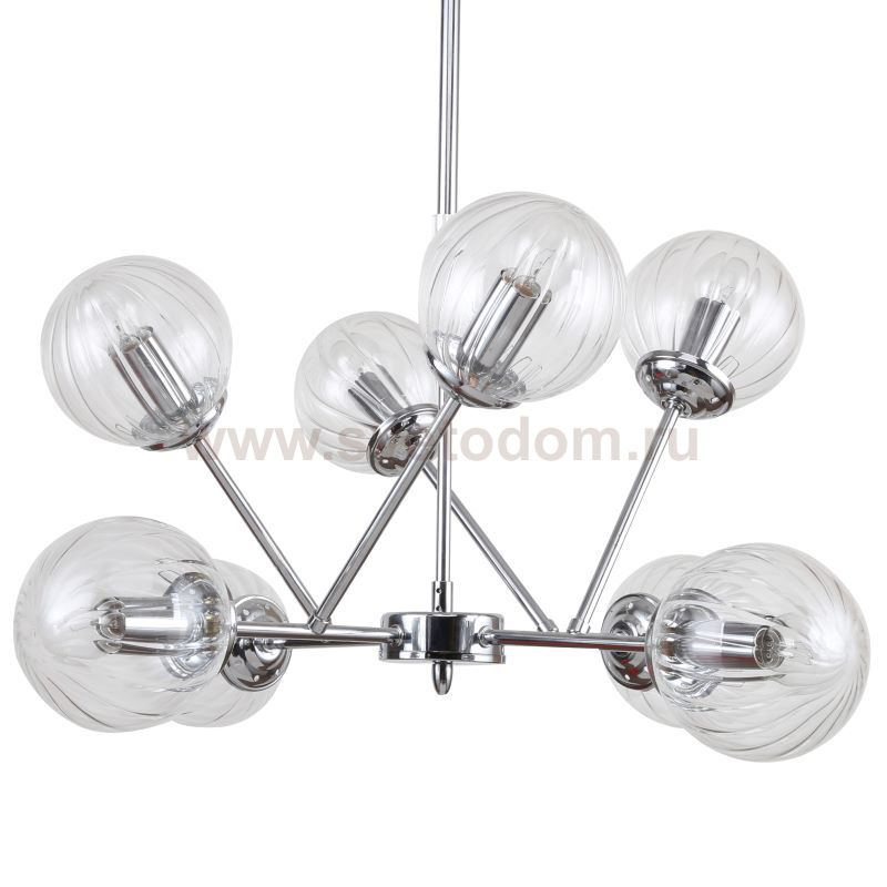 Люстра потолочная на штанге 2001/09/08P Stilfort, серия Viviene, цвет арматуры- хром, цвет плафонов - прозрачный, лампы - 8*E14*40W, материал арматуры - металл, материал плафонов - стекло |