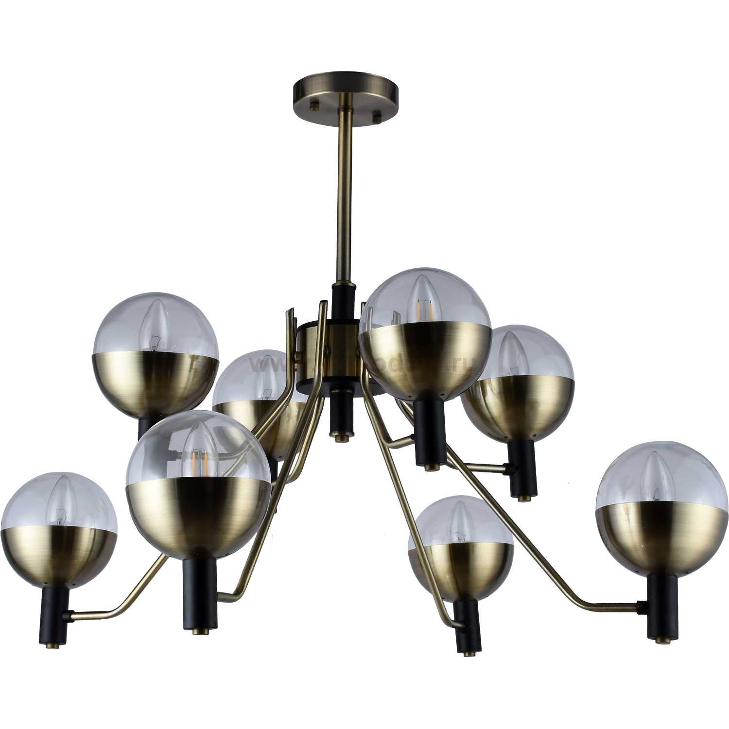Люстра потолочная на штанге 2034/05/08P Stilfort, серия Sharm, цвет арматуры- бронза, цвет плафонов - прозрачный, лампы - 8*E14*40W, материал арматуры - металл, материал плафонов - стекло