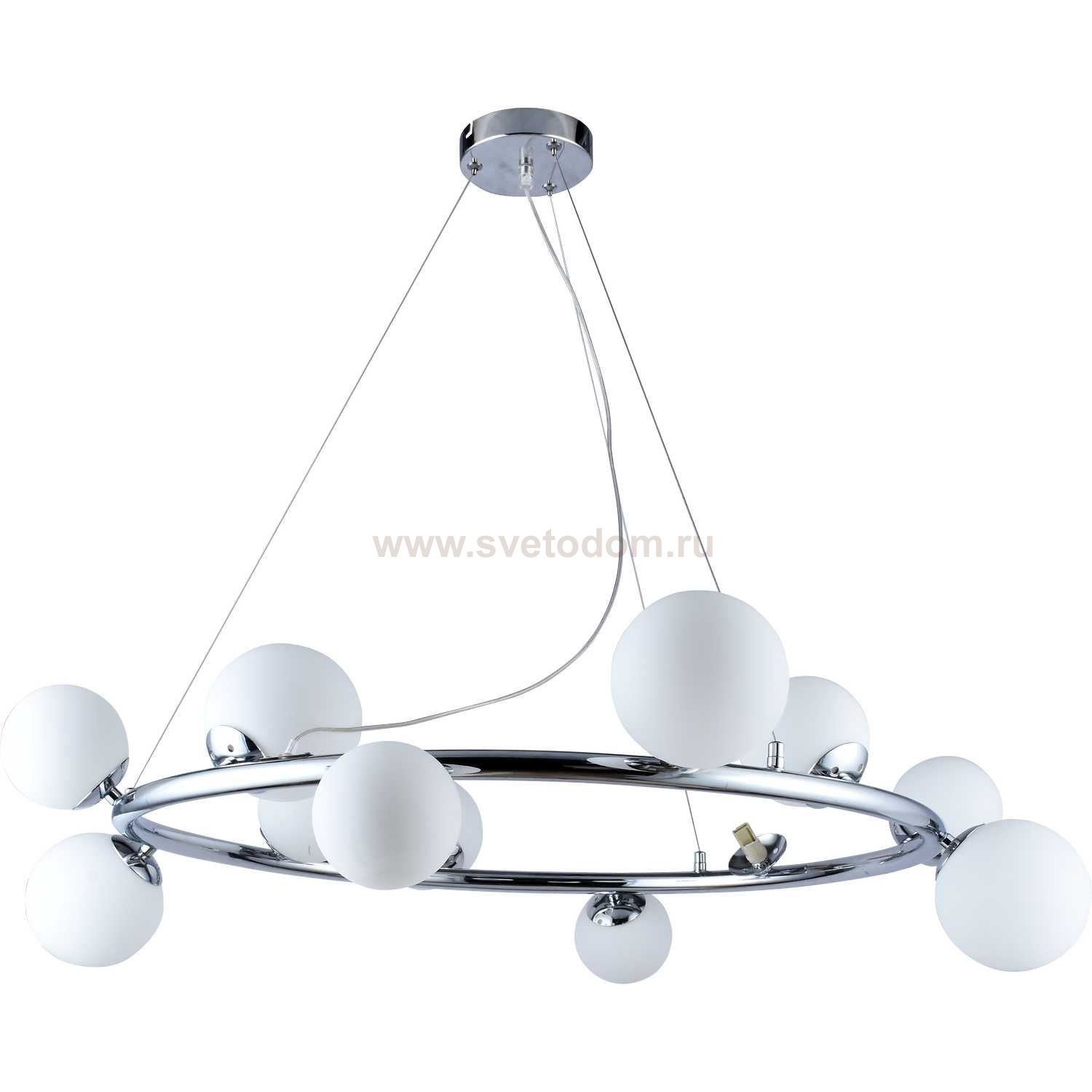 Люстра подвесная 2038/09/12P Stilfort серии Berry - необычная модель в стиле модерн. Арматура изготовлена из окрашенного металла в цвете "хром". Плафоны люстры матовые, выполнены в белом цвете.