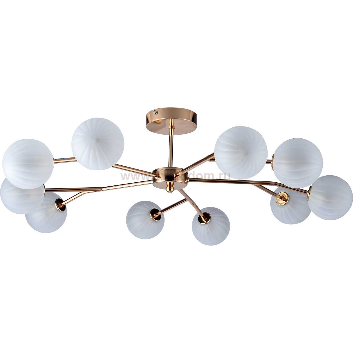 Люстра потолочная на штанге 2046/03/10C Stilfort, серия Fantano, цвет арматуры- золото, цвет плафонов - белый, лампы - 10*E14*40W, материал арматуры - металл, материал плафонов - стекло