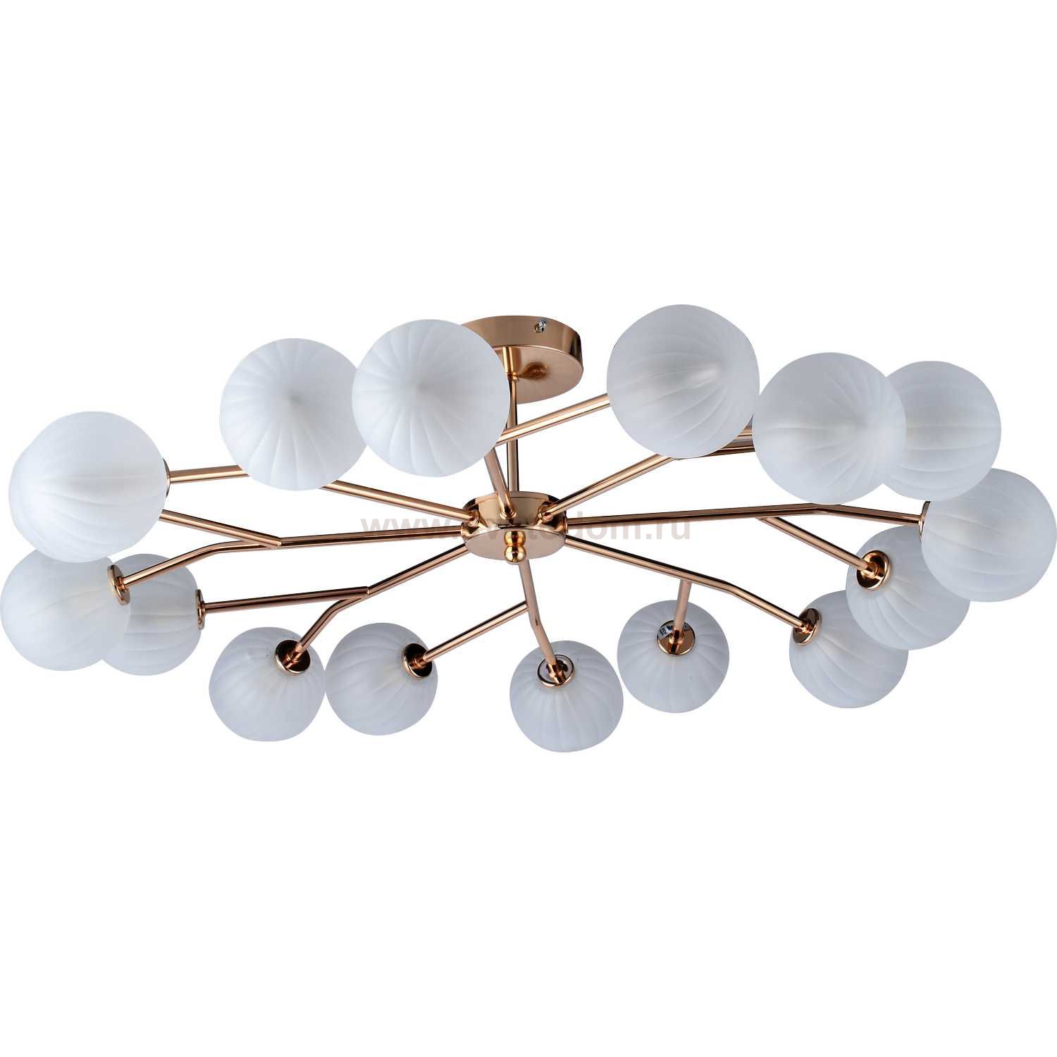 Люстра потолочная на штанге 2046/03/16C Stilfort, серия Fantano, цвет арматуры- золото, цвет плафонов - белый, лампы - 16*E14*40W, материал арматуры - металл, материал плафонов - стекло