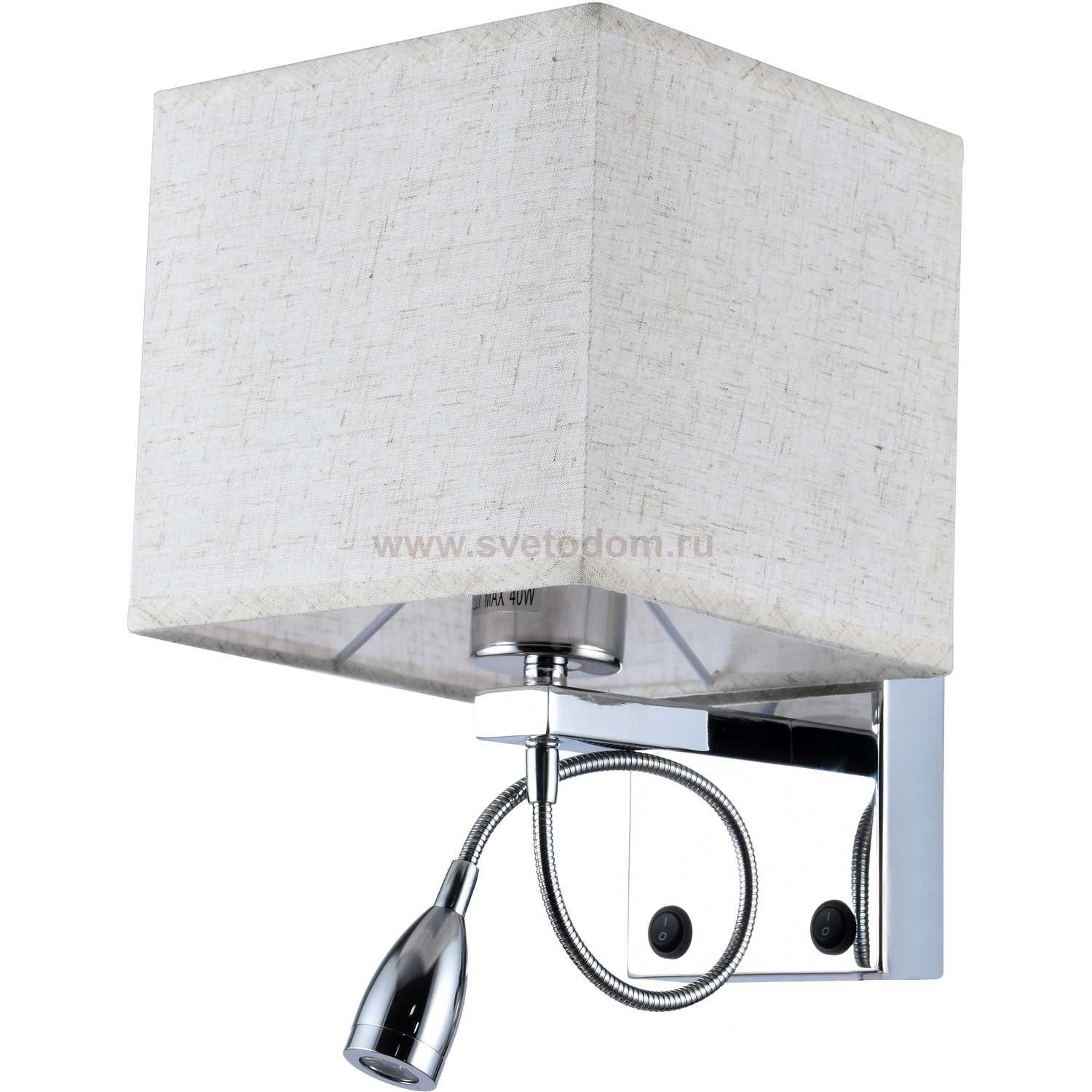 Бра 2064/01/02W Stilfort, серия Duo, цвет арматуры- хром, цвет плафонов - бежевый, лампы - 1*E27*40W, материал арматуры - металл, материал плафонов - ткань |
