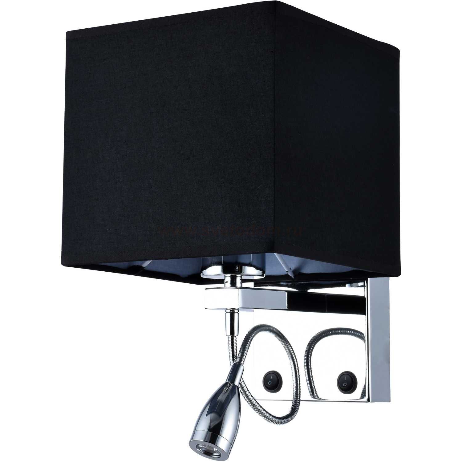Бра 2064/02/02W Stilfort, серия Duo, цвет арматуры- черный и хром, цвет плафонов - черный, лампы - 1*E27*40W, материал арматуры - металл, материал плафонов - ткань |