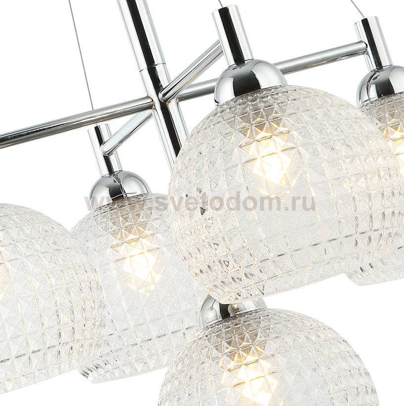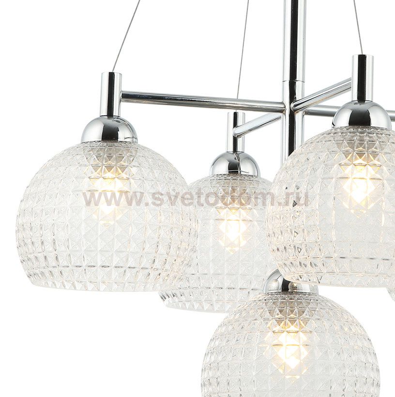Люстра подвесная 2118/09/05P Stilfort серии Frency - выполнена в стиле модерн. Арматура изготовлена из окрашенного металла в цвете "хром". Плафоны люстры выполнены из текстурированного стекла, прозрачные.