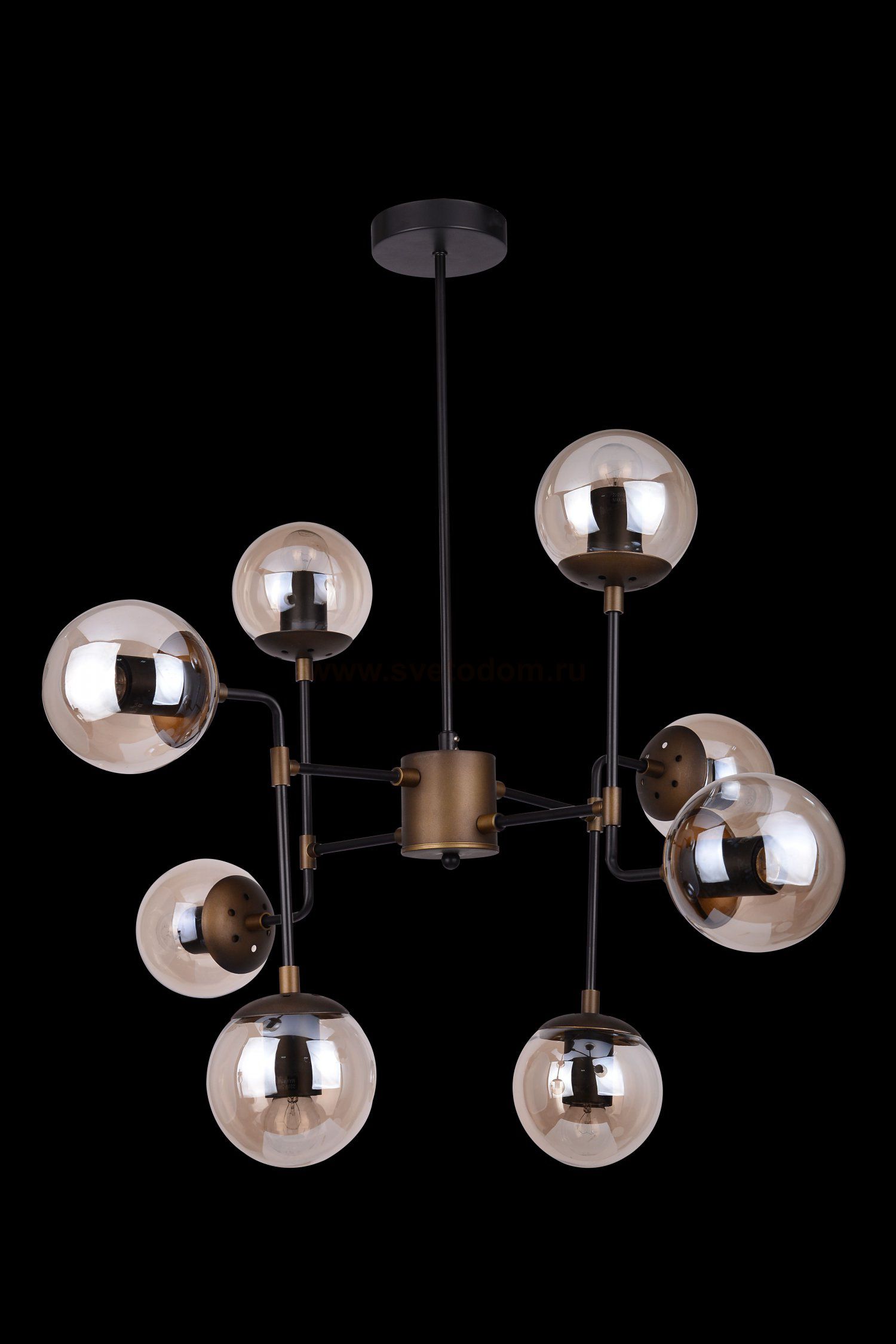 Люстра потолочная на штанге 3009/03/08P Stilfort, серия Ramo, цвет арматуры- черный и золото, цвет плафонов - прозрачный, лампы - 8*E27*40W, материал арматуры - металл, материал плафонов - стекло