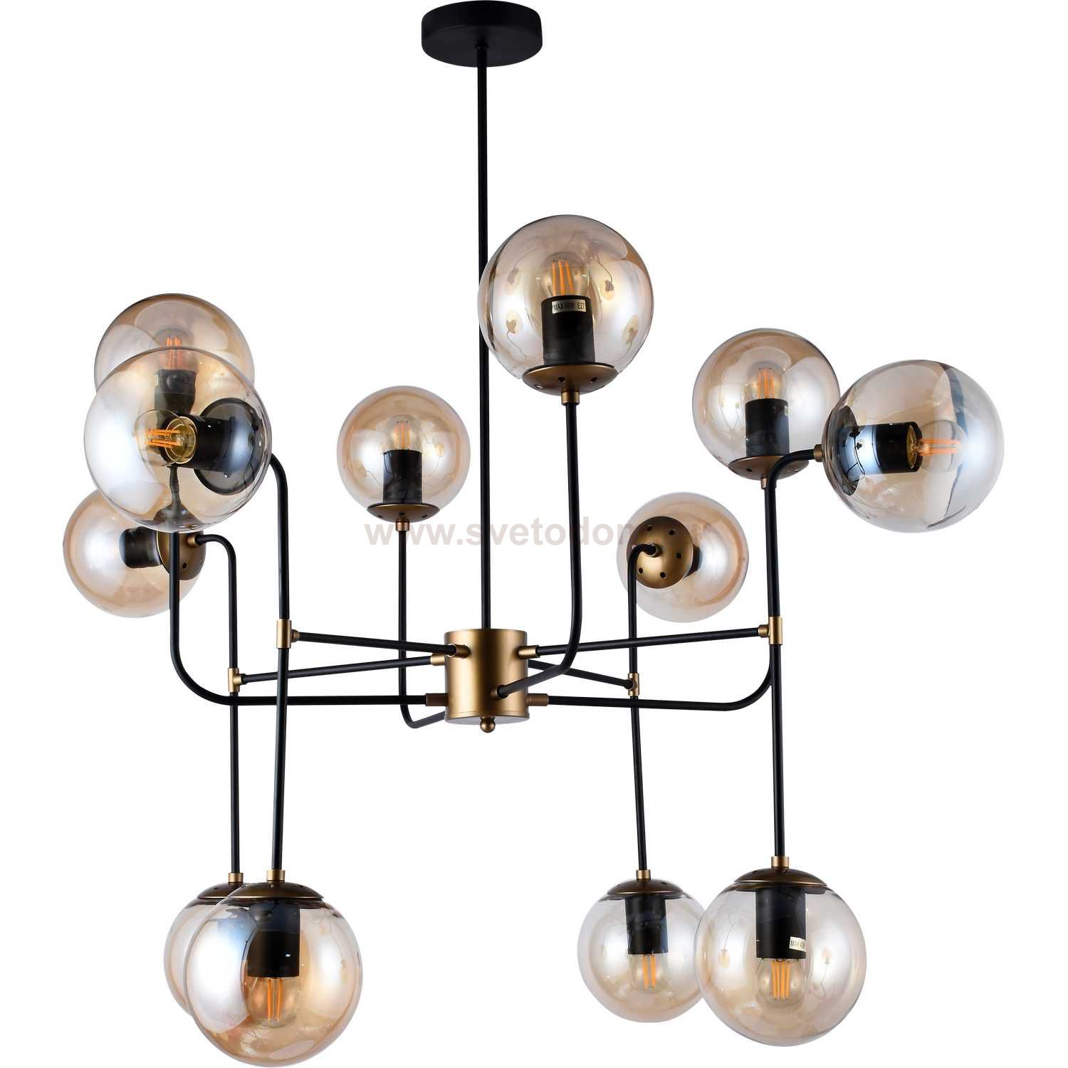 Люстра потолочная на штанге 3009/03/12P Stilfort, серия Ramo, цвет арматуры- черный и золото, цвет плафонов - прозрачный, лампы - 12*E27*40W, материал арматуры - металл, материал плафонов - стекло