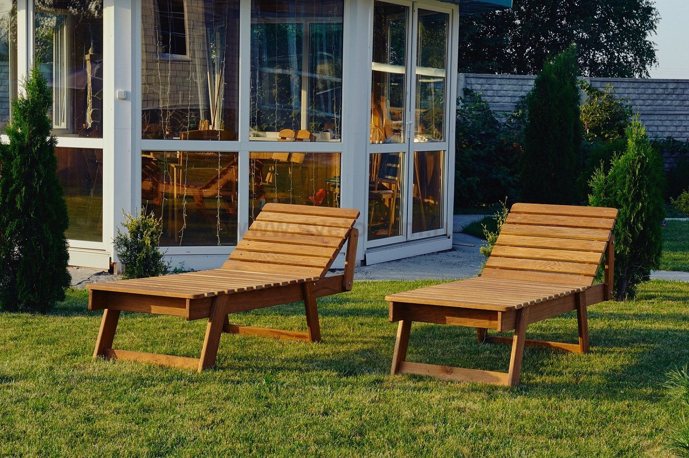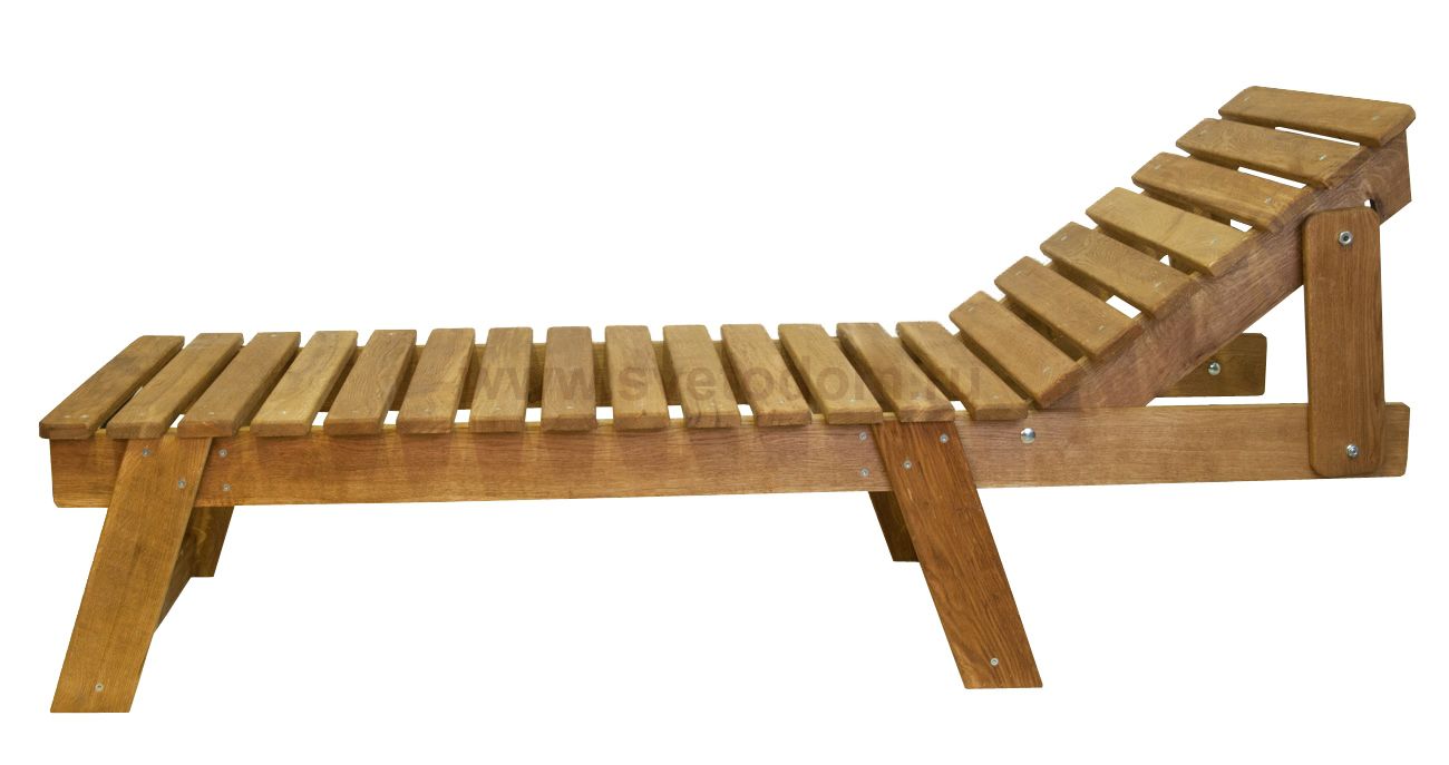Шезлонг производится из массива дуба. Проходит термическую обработку и пропитку в экологически чистом масле с содержанием 30% парафина, применяемого в косметической отрасли. Эта технология не дает возможности проникать в древесину атмосферной влаге или прямого попадания воды(дождя). Мебель имеет натуральный цвет с хорошо выраженной структурой. Дополнительно не покрывается никакими красителями или пропитками.