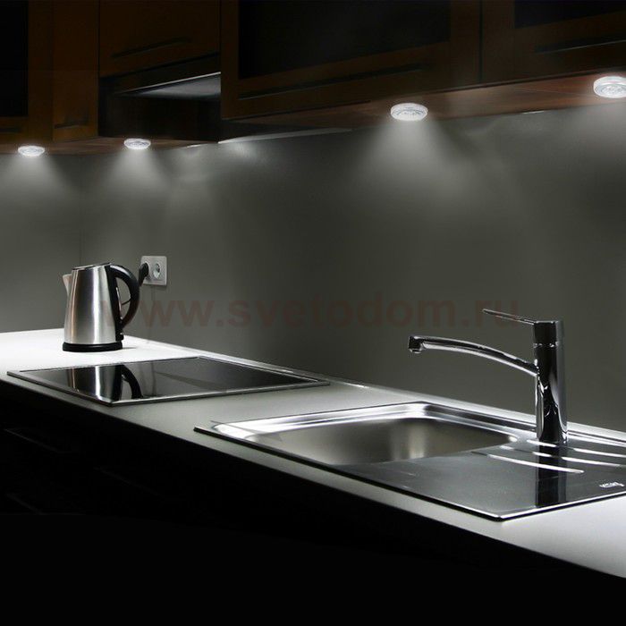 Такой осветительный предмет часто называют «таблеткой» — он удобный, плоский, мобильный! Прибор работает от батареек и может крепиться на двойной скотч к любой поверхности, где есть нужда в источнике света. |