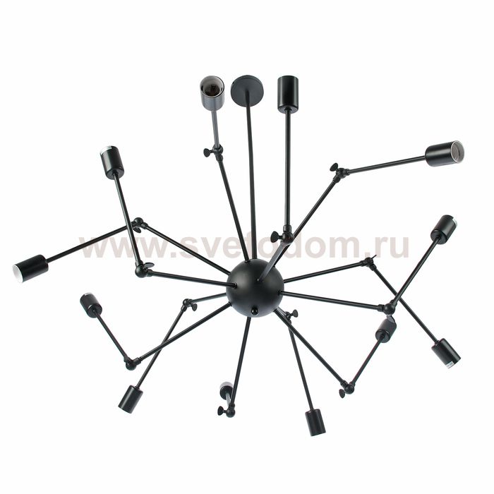 Люстра подвесная «Краб» идеально впишется в интерьер в стиле лофт. Шарнирное крепление рожков позволяет регулировать расположение ламп. Основание светильника регулируется по высоте: 2 уровня. Подходит лампа E27 мощностью не более 40 Вт. Особенно хорошо будут смотреться лампы Эдисона. Благодаря большому количеству ламп (12 шт.) легко осветить площадь до 24 м?. |