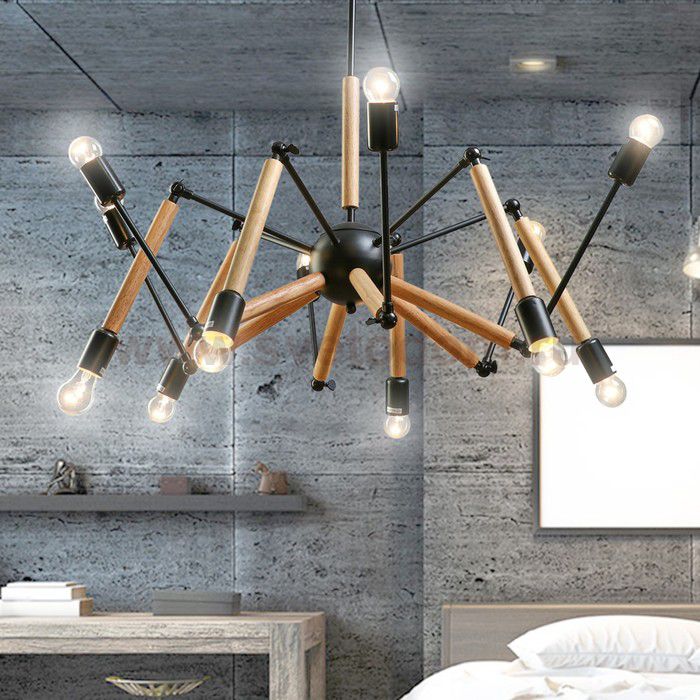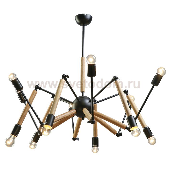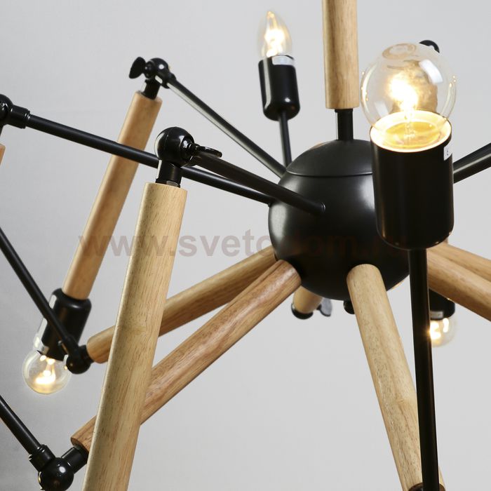 Люстра «Краб-дерево» выполнена в стиле loft. Большое количество ламп позволяет осветить комнату площадью до 30 м?. Возможная регулировка угла наклона рожков в средней части. Дерево пропитано маслом и покрыто лаком. Нет регулировки по высоте. |