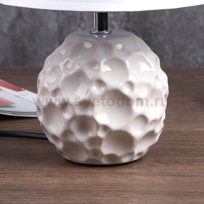 Декоративная настольная лампа «Монтела» с текстильным абажуром украсит интерьер в стиле контемпорари. Интересное геометричное керамическое основание привлекает внимание. |