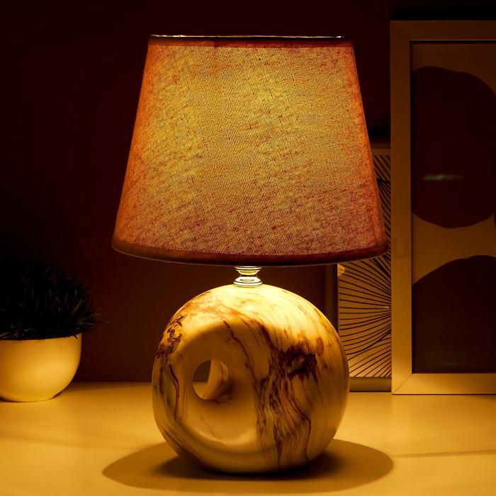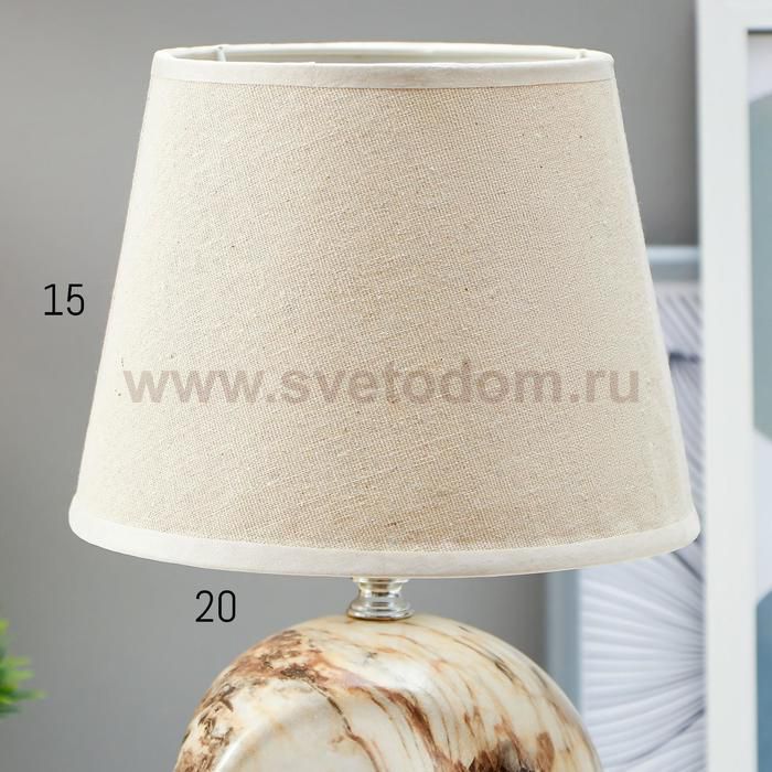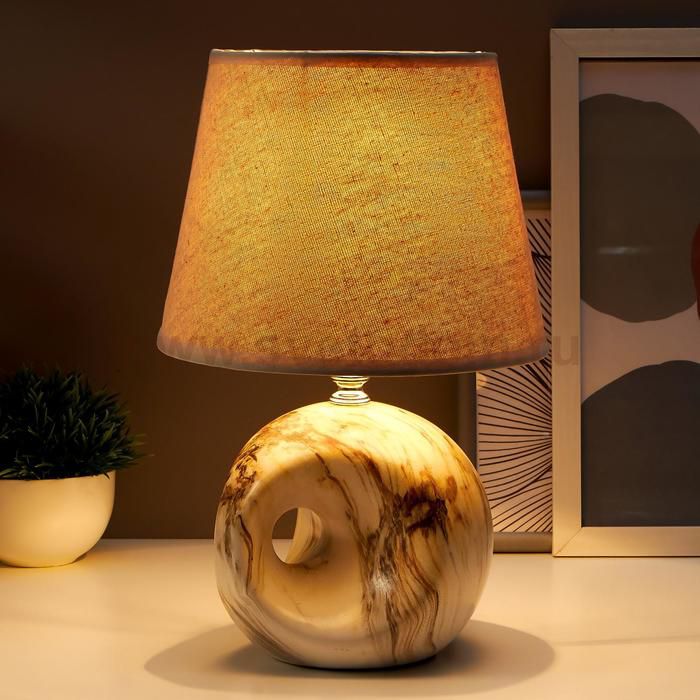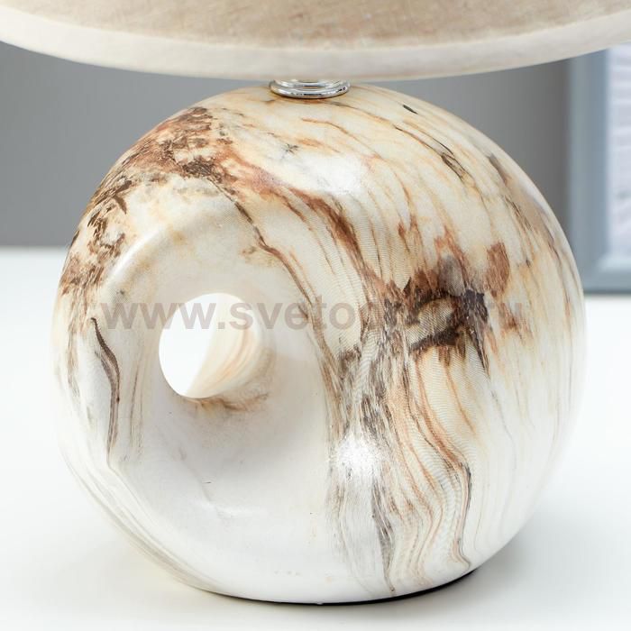 Декоративная настольная лампа «Аделия» с текстильным абажуром украсит интерьер в экостиле. Интересное керамическое основание имитирует камень. |