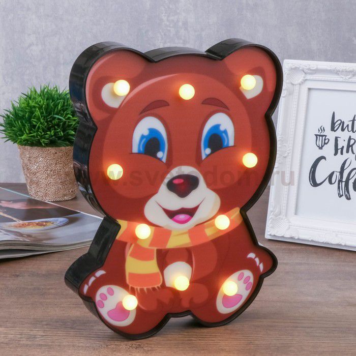 2900044615544 Отзывы Ночник "Мишка" 10хLED батарейки 2хAA МИКС 16,5х2,8х22,3 см.Пока нет отзывов об этом товаре, напишите и он обязательно появится после модерации! Оставить свой отзывДругие товары магазина Фото