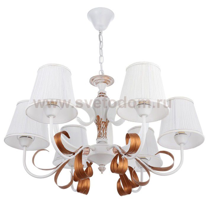 Люстра «Паула» выполнена в классическом стиле. Имеет белое основание с золотыми декоративными элементами и белые тканевые плафоны. Она идеально впишется в интерьер зала, столовой или гостевой комнаты площадью до 15 м?. Высота светильника регулируется. Подходит для натяжных потолков. |