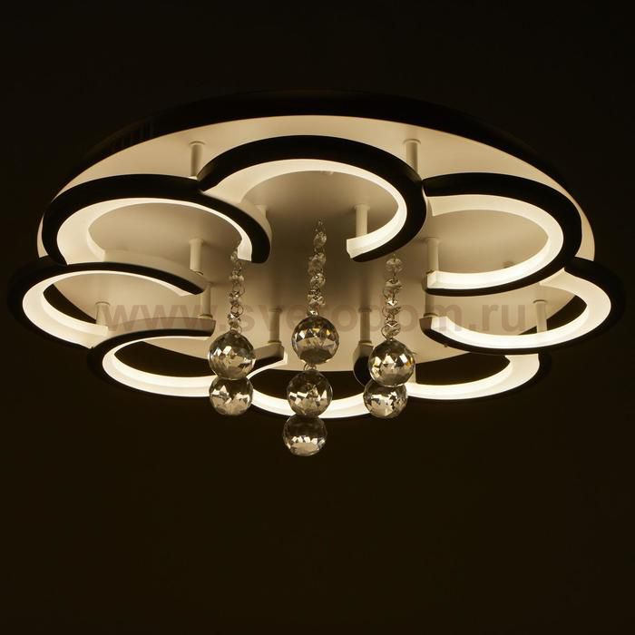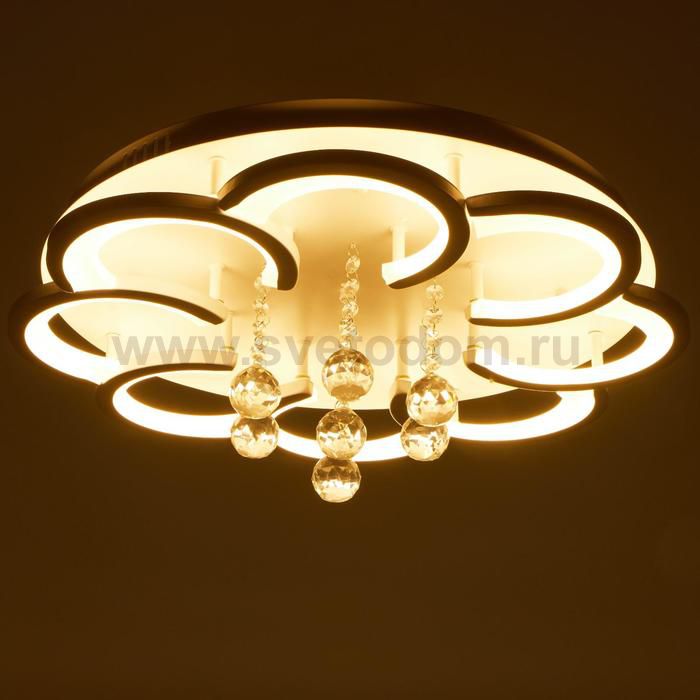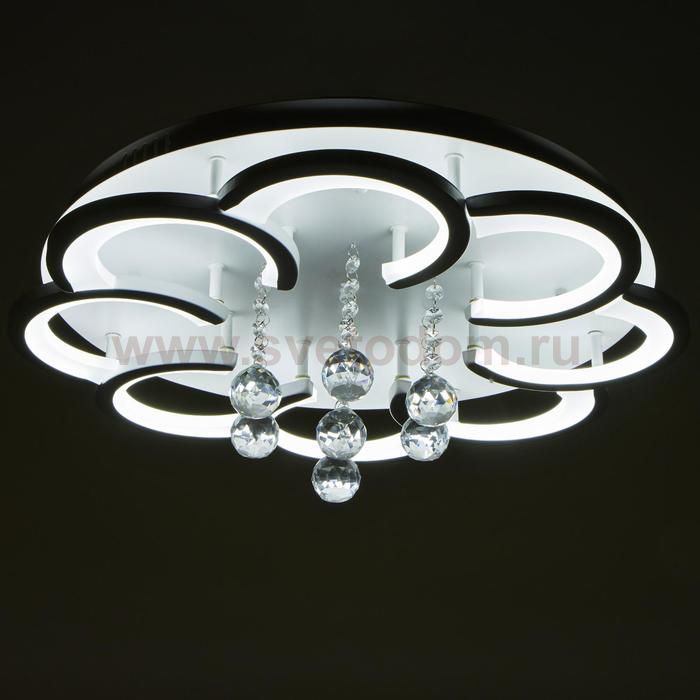 Светодиодный светильник с пультом выполнен в современном стиле. Модная и стильная люстра подойдёт для интерьера детской, гостиной, зала, спальни, прихожей или кухни. С помощью пульта можно плавно регулировать температуру света — от 3 000 до 6 000 К; и яркость — от ночника до полной мощности свечения. Батарейки в комплект не входят. Изделие выполнено из качественного акрила, металла и светодиодов. Срок службы люстры в домашних условиях — 20 000 часов. Подходит для помещений с низкими потолками и для натяжных потолков. Осветит комнату площадью до 12 м?. |