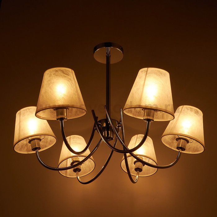 Люстра «Ривьера» выполнена в классическом стиле. Имеет хромированное основание и белые тканевые плафоны. Она идеально впишется в интерьер зала, столовой или гостевой комнаты площадью до 16 м?. Высота светильника не регулируется. Подходит для натяжных потолков. |