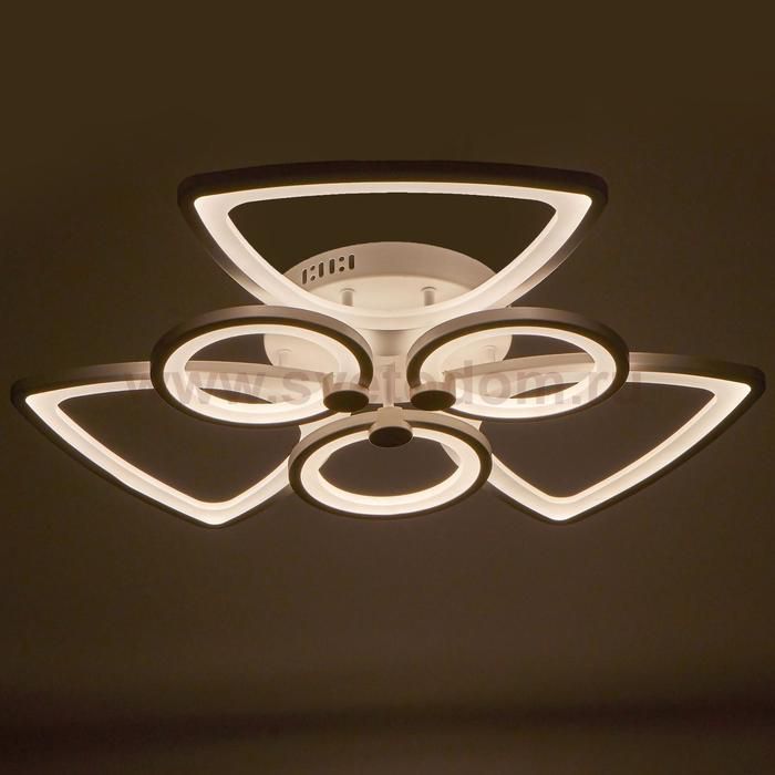 Светодиодный светильник с пультом выполнен в современном стиле. Модная и стильная люстра подойдёт для интерьера детской, гостиной, зала, спальни, прихожей или кухни. С помощью пульта можно плавно регулировать температуру света — от 3 000 до 6 000 К; и яркость — от ночника до полной мощности свечения. Батарейки в комплект не входят. Изделие выполнено из качественного акрила, металла и светодиодов. Срок службы люстры в домашних условиях — 20 000 часов. Подходит для помещений с низкими потолками и для натяжных потолков. Осветит комнату площадью до 22 м?. |