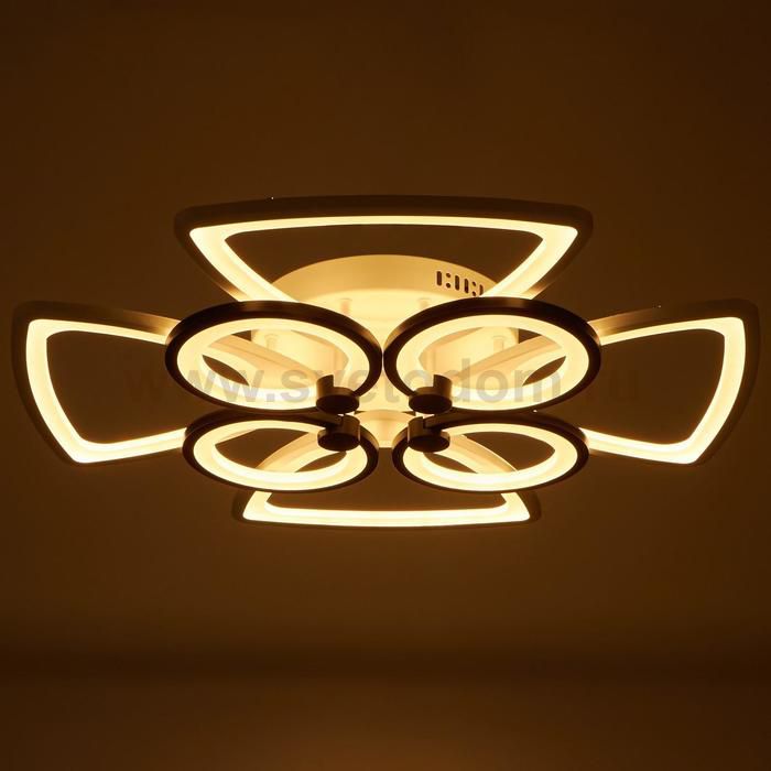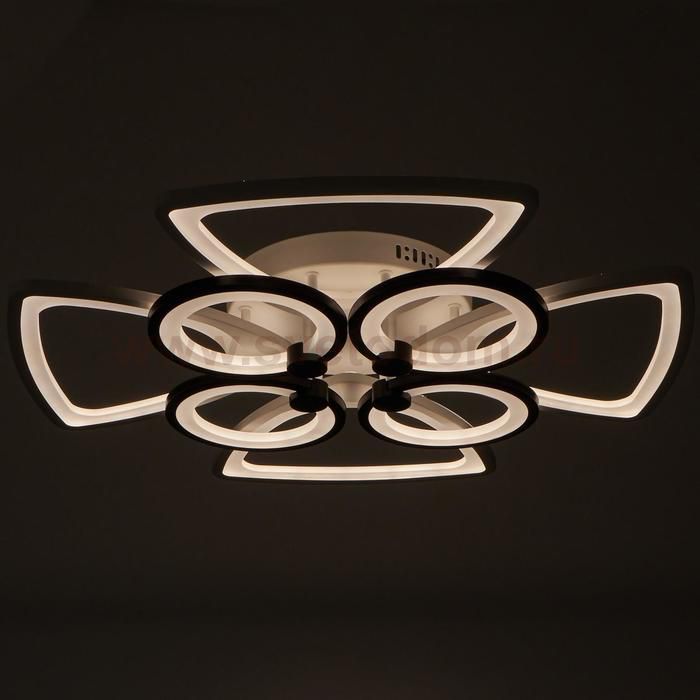 Светодиодный светильник с пультом выполнен в современном стиле. Модная и стильная люстра подойдёт для интерьера детской, гостиной, зала, спальни, прихожей или кухни. С помощью пульта можно плавно регулировать температуру света — от 3 000 до 6 000 К; и яркость — от ночника до полной мощности свечения. Батарейки в комплект не входят. Изделие выполнено из качественного акрила, металла и светодиодов. Срок службы люстры в домашних условиях — 20 000 часов. Подходит для помещений с низкими потолками и для натяжных потолков. Осветит комнату площадью до 30 м?. |