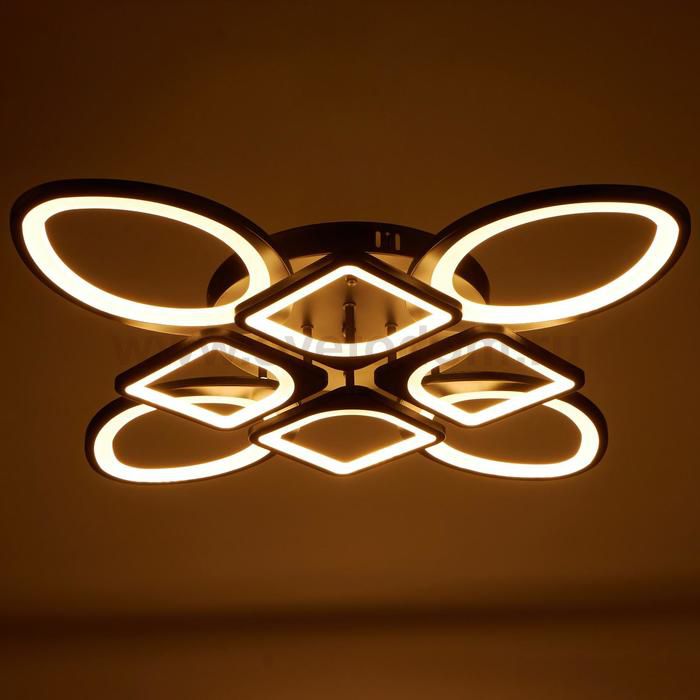 Светодиодный светильник с пультом выполнен в современном стиле. Модная и стильная люстра подойдёт для интерьера детской, гостиной, зала, спальни, прихожей или кухни. С помощью пульта можно плавно регулировать температуру света — от 3 000 до 6 000 К; и яркость — от ночника до полной мощности свечения. Батарейки в комплект не входят. Изделие выполнено из качественного акрила, металла и светодиодов. Срок службы люстры в домашних условиях — 20 000 часов. Подходит для помещений с низкими потолками и для натяжных потолков. Осветит комнату площадью до 30 м?. |
