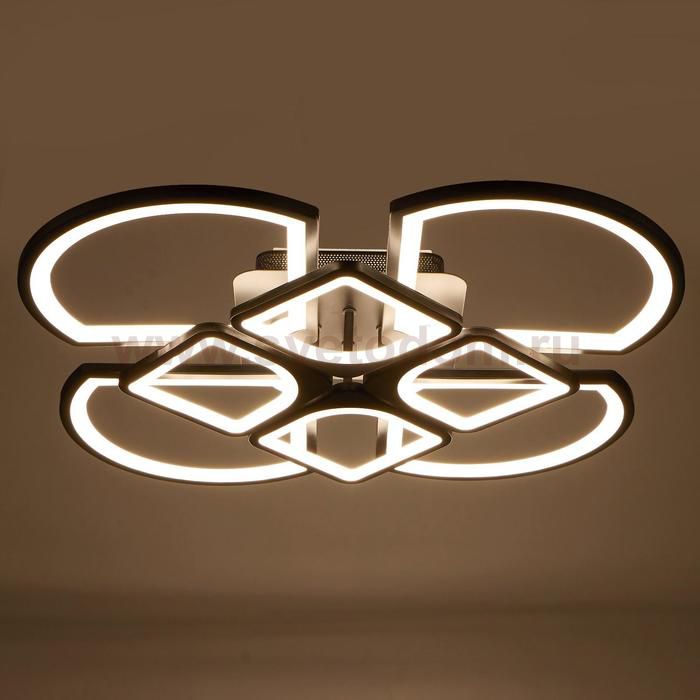 Светодиодный светильник с пультом выполнен в современном стиле. Модная и стильная люстра подойдёт для интерьера детской, гостиной, зала, спальни, прихожей или кухни. С помощью пульта можно плавно регулировать температуру света — от 3 000 до 6 000 К; и яркость — от ночника до полной мощности свечения. Батарейки в комплект не входят. Изделие выполнено из качественного акрила, металла и светодиодов. Срок службы люстры в домашних условиях — 20 000 часов. Подходит для помещений с низкими потолками и для натяжных потолков. Осветит комнату площадью до 33 м?. |