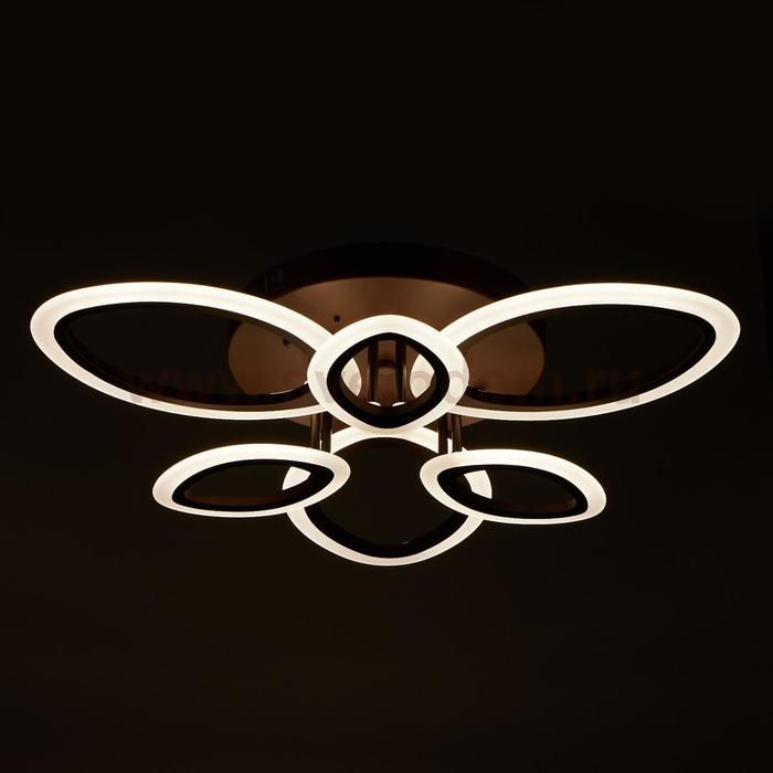 Светодиодный светильник с пультом выполнен в современном стиле. Модная и стильная люстра подойдёт для интерьера детской, гостиной, зала, спальни, прихожей или кухни. С помощью пульта можно плавно регулировать температуру света — от 3 000 до 6 000 К; и яркость — от ночника до полной мощности свечения. Батарейки в комплект не входят. Изделие выполнено из качественного акрила, металла и светодиодов. Срок службы люстры в домашних условиях — 20 000 часов. Подходит для помещений с низкими потолками и для натяжных потолков. Осветит комнату площадью до 25 м?. |