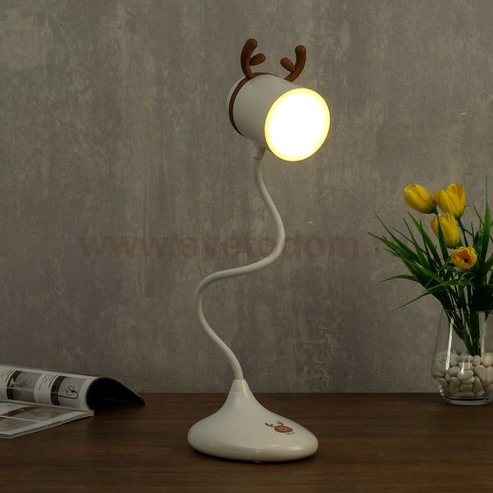 Настольная светодиодная лампа с рассеивателем в форме оленя и диммером поможет организовать комфортное рабочее пространство. Имеет 3 режима работы: 3 000 К, 4 000 К, 6 000 К. |