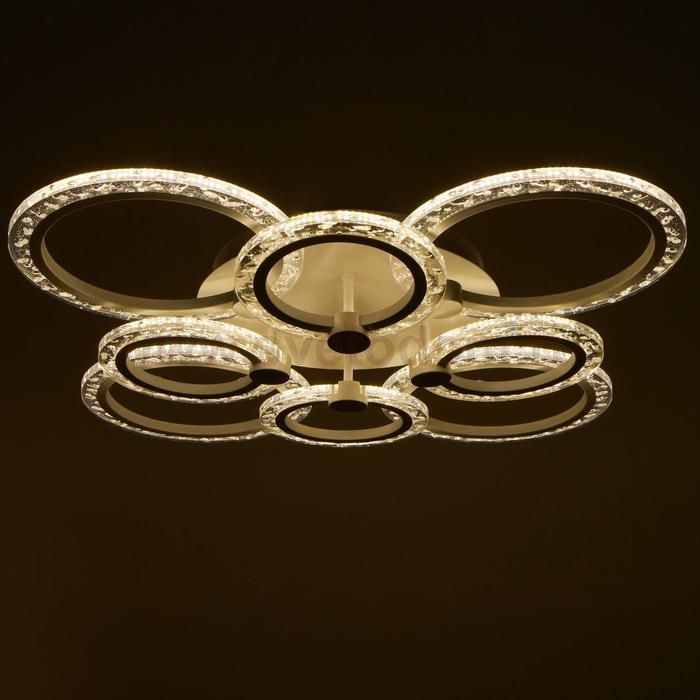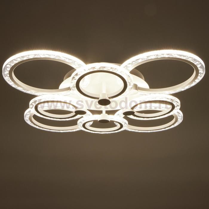Светодиодный светильник с пультом выполнен в современном стиле. Модная и стильная люстра подойдёт для интерьера детской, гостиной, зала, спальни, прихожей или кухни. С помощью пульта можно плавно регулировать температуру света — от 3 000 до 6 000 К; и яркость — от ночника до полной мощности свечения. Батарейки в комплект не входят. Изделие выполнено из качественного металла, пластика и светодиодов. Срок службы люстры в домашних условиях — 20 000 часов. Подходит для помещений с низкими потолками и для натяжных потолков. Осветит комнату площадью до 28 м?. |