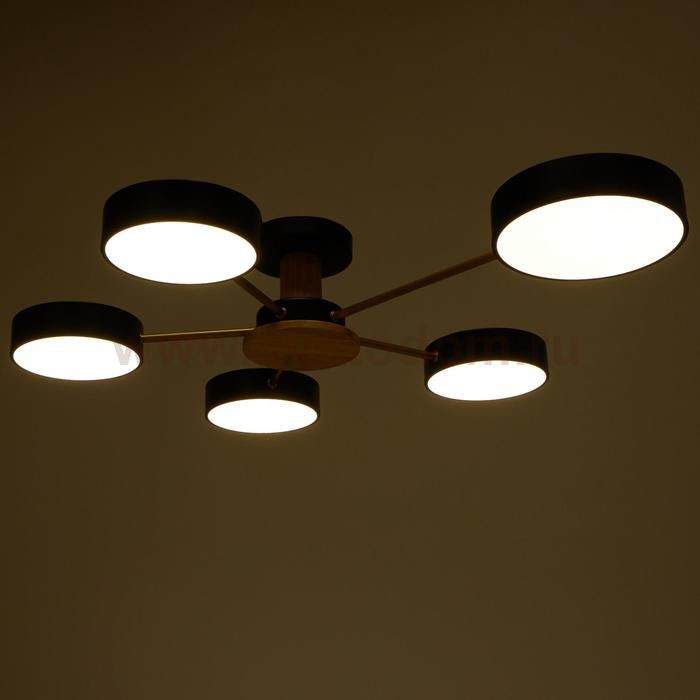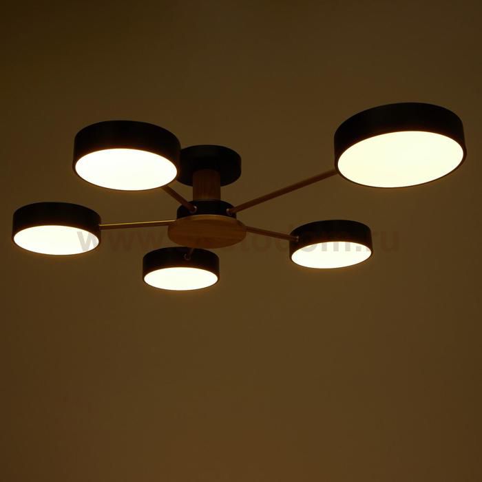 Светодиодный светильник с пультом выполнен в современном стиле. Модная и стильная люстра подойдёт для интерьера детской, гостиной, зала, спальни, прихожей или кухни. С помощью пульта можно плавно регулировать температуру света — от 3 000 до 6 000 К; и яркость — от ночника до полной мощности свечения. Батарейки в комплект не входят. Изделие выполнено из качественного дерева, металла, пластика и светодиодов. Срок службы люстры в домашних условиях — 20 000 часов. Подходит для помещений с низкими потолками и для натяжных потолков. Осветит комнату площадью до 16 м?. |