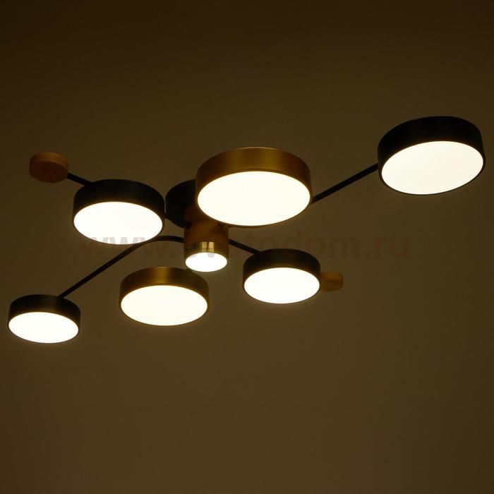 Светодиодный светильник с пультом выполнен в современном стиле. Модная и стильная люстра подойдёт для интерьера детской, гостиной, зала, спальни, прихожей или кухни. С помощью пульта можно плавно регулировать температуру света — от 3 000 до 6 000 К; и яркость — от ночника до полной мощности свечения. Батарейки в комплект не входят. Изделие выполнено из качественного дерева, металла, пластика и светодиодов. Срок службы люстры в домашних условиях — 20 000 часов. Подходит для помещений с низкими потолками и для натяжных потолков. Осветит комнату площадью до 20 м?. |