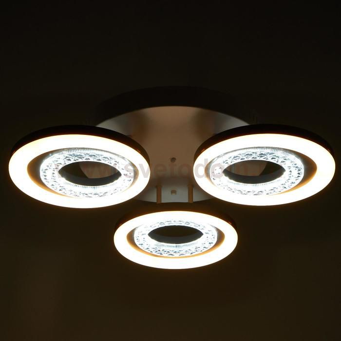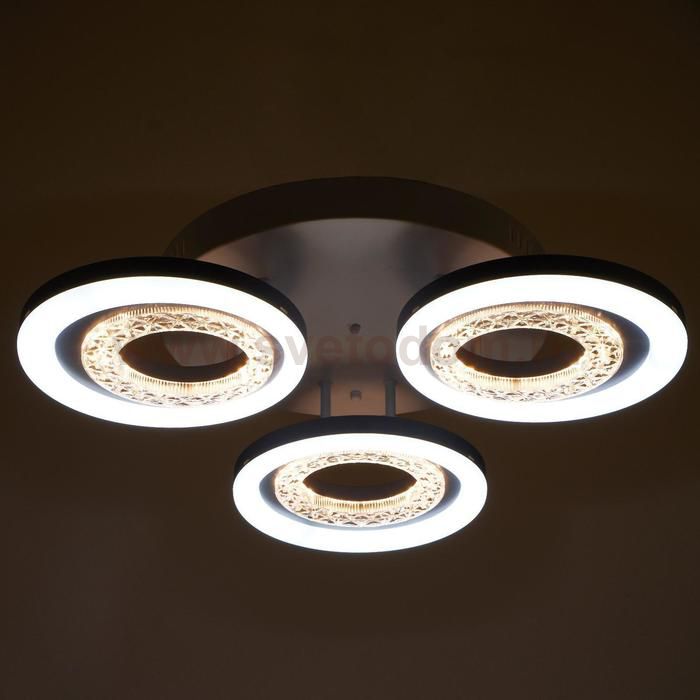 Светодиодный светильник с пультом выполнен в современном стиле. Модная и стильная люстра подойдёт для интерьера детской, гостиной, зала, спальни, прихожей или кухни. С помощью пульта можно плавно регулировать температуру света — от 3 000 до 6 000 К; и яркость — от ночника до полной мощности свечения. Батарейки в комплект не входят. Изделие выполнено из качественного металла, пластика и светодиодов. Срок службы люстры в домашних условиях — 20 000 часов. Подходит для помещений с низкими потолками и для натяжных потолков. Осветит комнату площадью до 9 м?. |