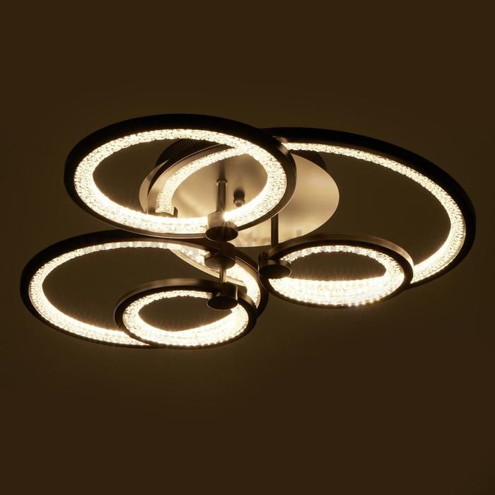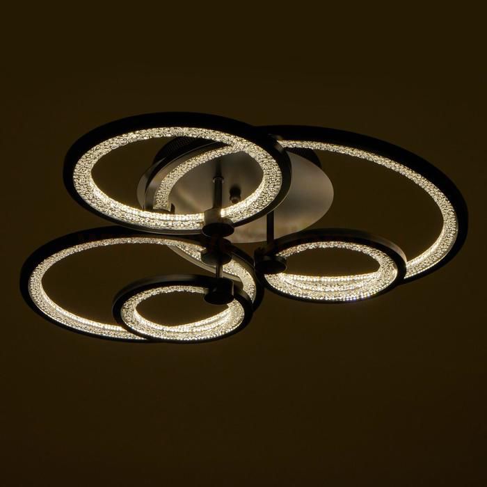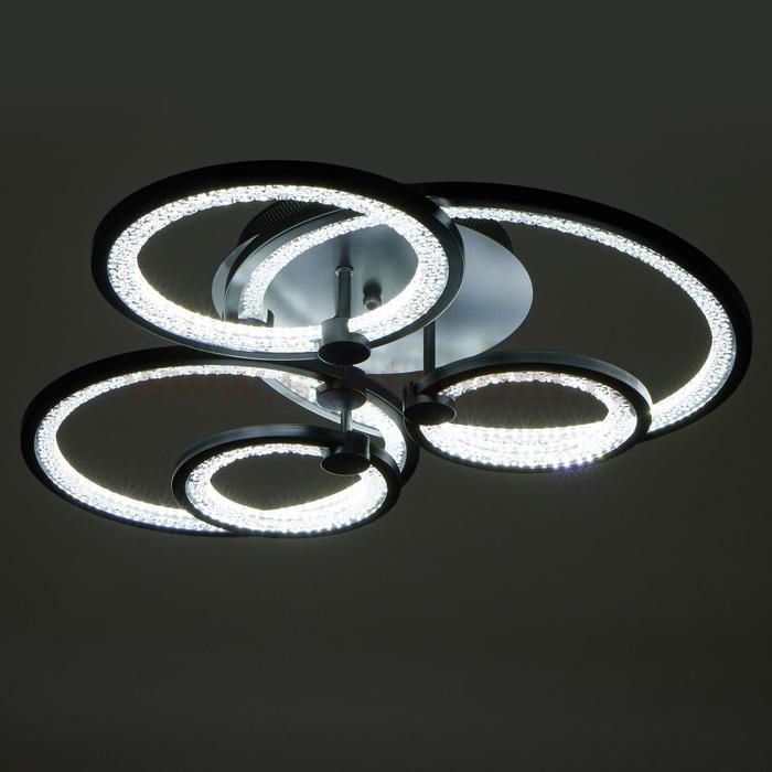 Светодиодный светильник с пультом выполнен в современном стиле. Модная и стильная люстра подойдёт для интерьера детской, гостиной, зала, спальни, прихожей или кухни. С помощью пульта можно плавно регулировать температуру света — от 3 000 до 6 000 К; и яркость — от ночника до полной мощности свечения. Батарейки в комплект не входят. Изделие выполнено из качественного металла, пластика и светодиодов. Срок службы люстры в домашних условиях — 20 000 часов. Подходит для помещений с низкими потолками и для натяжных потолков. Осветит комнату площадью до 17 м?. |