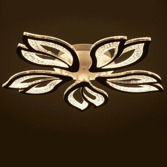 Светодиодный светильник с пультом выполнен в современном стиле. Модная и стильная люстра подойдёт для интерьера детской, гостиной, зала, спальни, прихожей или кухни. С помощью пульта можно плавно регулировать температуру света — от 3 000 до 6 000 К; и яркость — от ночника до полной мощности свечения. Батарейки в комплект не входят. Изделие выполнено из качественного металла, пластика и светодиодов. Срок службы люстры в домашних условиях — 20 000 часов. Подходит для помещений с низкими потолками и для натяжных потолков. Осветит комнату площадью до 14 м?. |