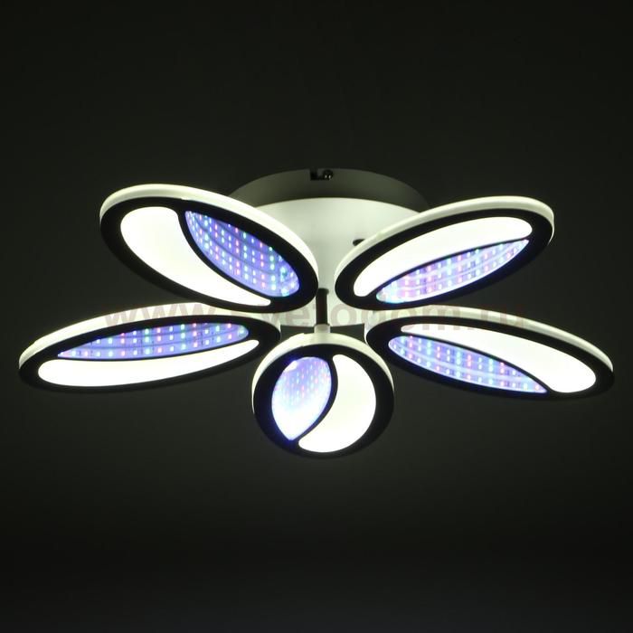Светодиодный светильник с пультом выполнен в современном стиле. Модная и стильная люстра подойдёт для интерьера детской, гостиной, зала, спальни, прихожей или кухни. С помощью пульта можно плавно регулировать температуру света — от 3 000 до 6 000 К; и яркость — от ночника до полной мощности свечения. Батарейки в комплект не входят. Изделие выполнено из качественного металла, пластика и светодиодов. Срок службы люстры в домашних условиях — 20 000 часов. Подходит для помещений с низкими потолками и для натяжных потолков. Осветит комнату площадью до 11 м?. |