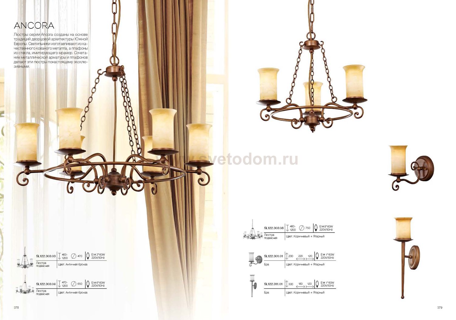 Касаемо коллекции модели St luce SL122.311.01 хотелось бы отметить основные моменты: Люстры серии Аnсоrа созданы на основе традиций дворцовой архитектуры Южной Европы. Светипьники изготавпивают из качественного кованого метаппа, а ппафоны из стекла, имитирующего мрамор. Сочетание металлической арматуры и ппафонов делают эти пюстры понастоящему эксклюзивными.
