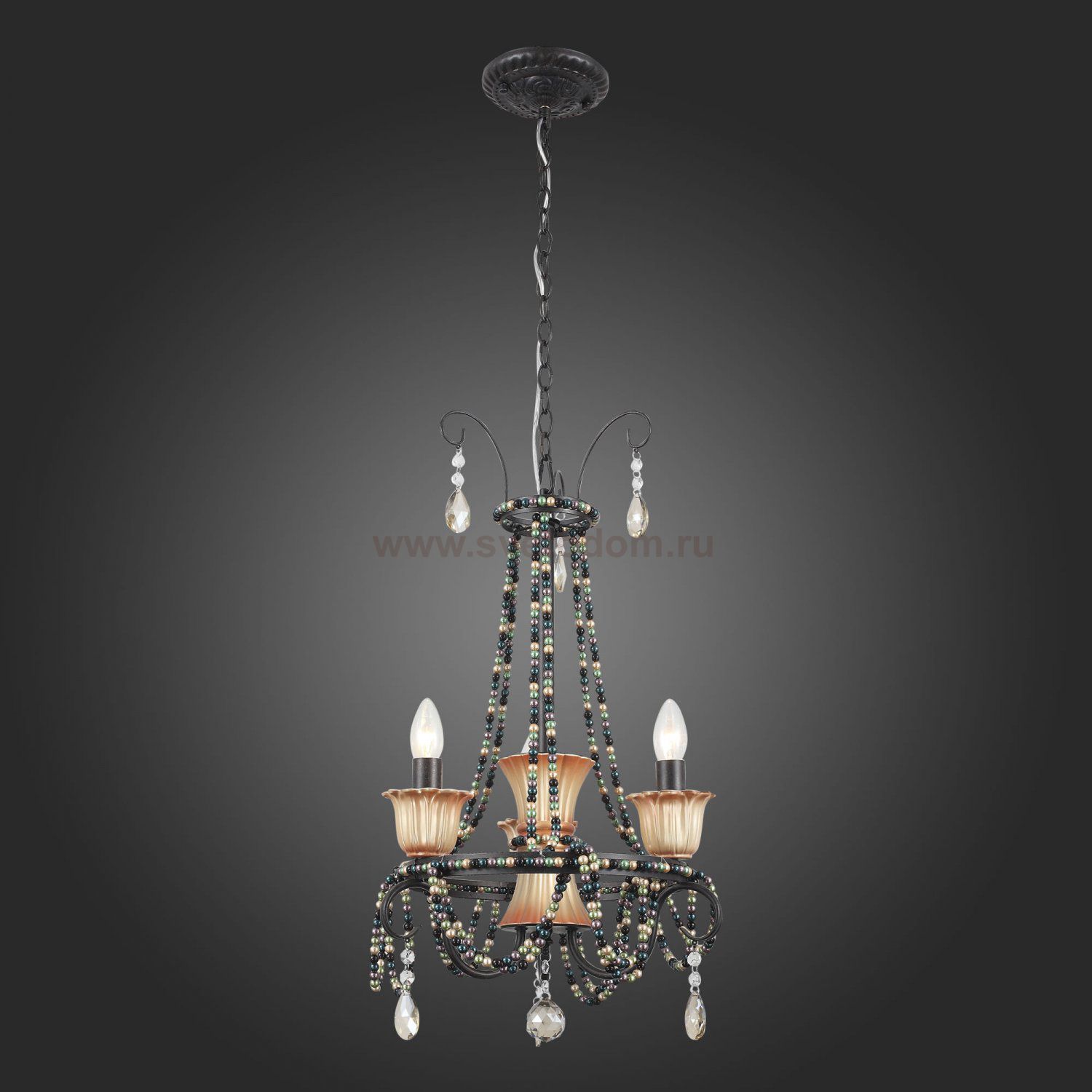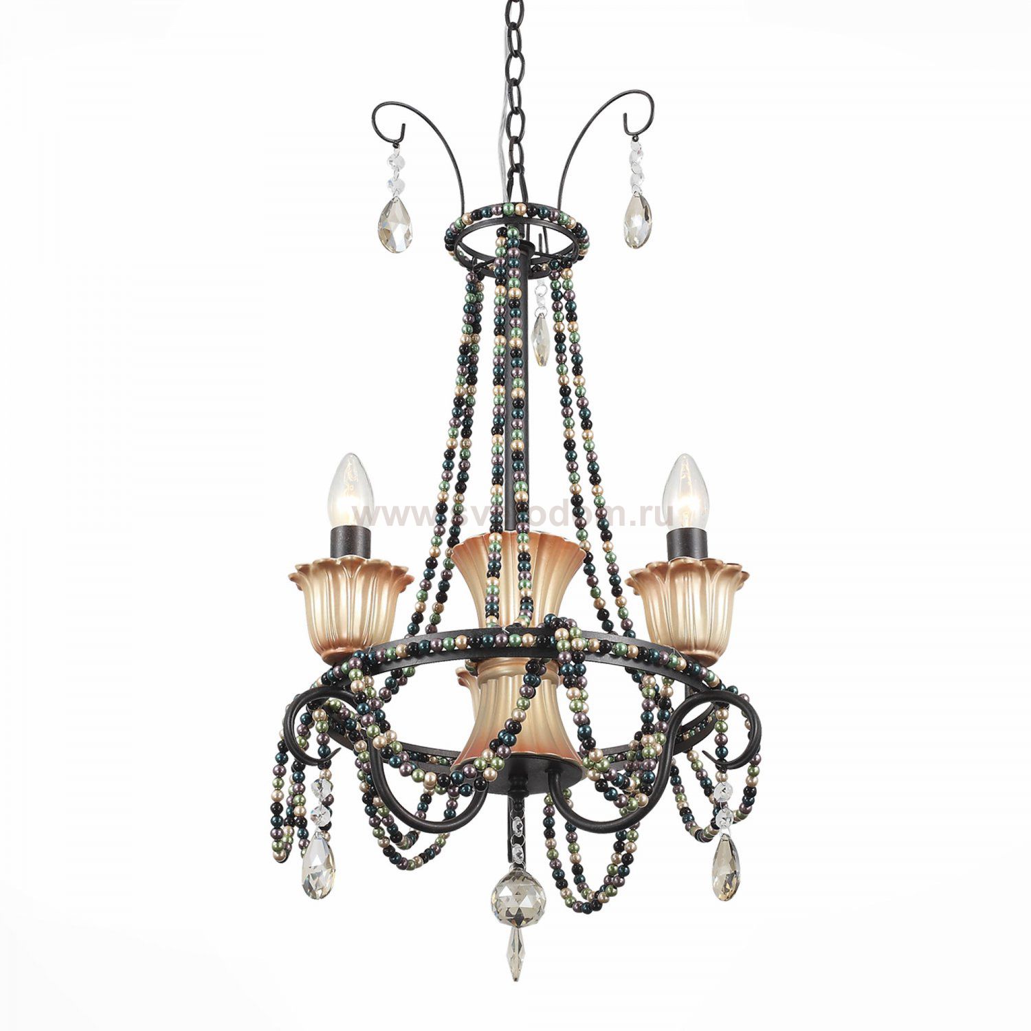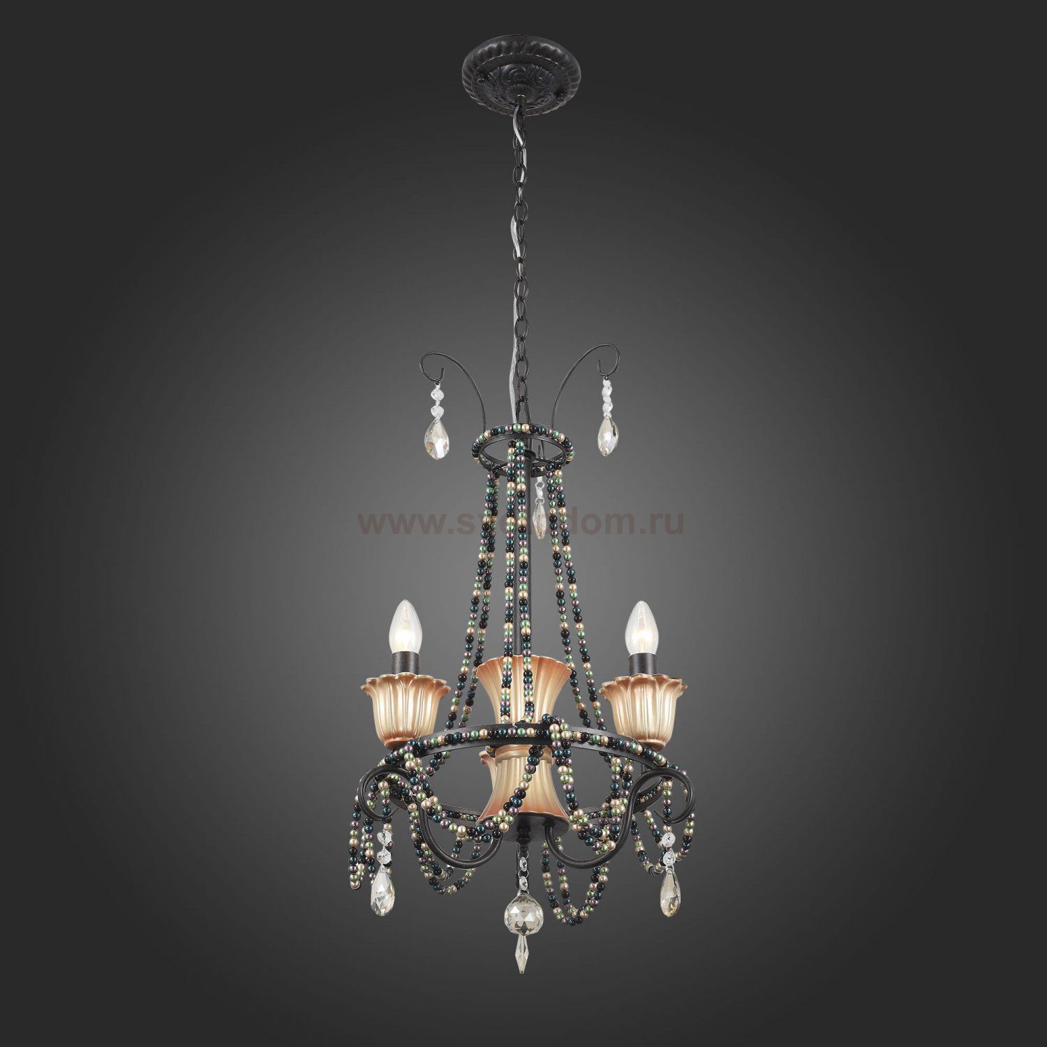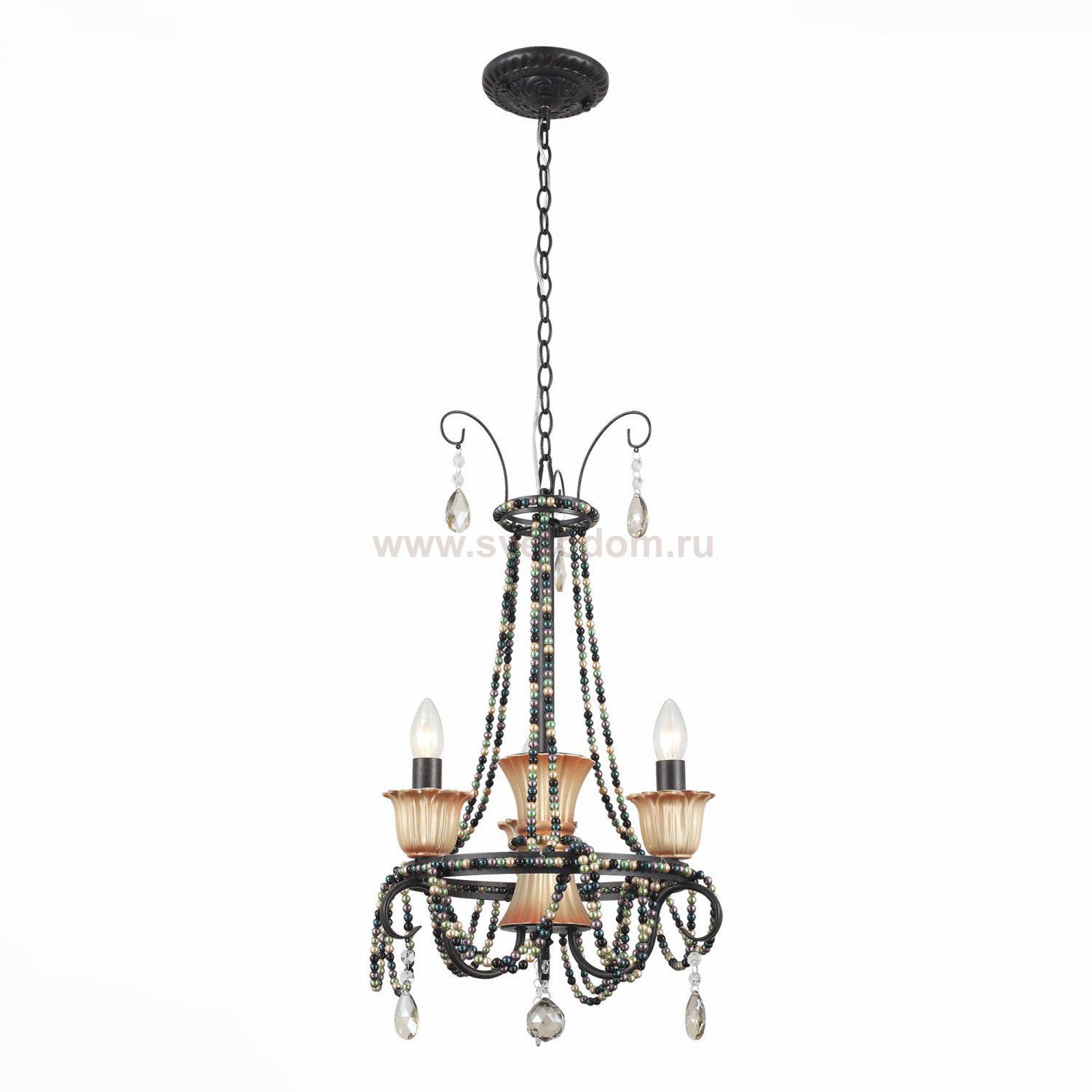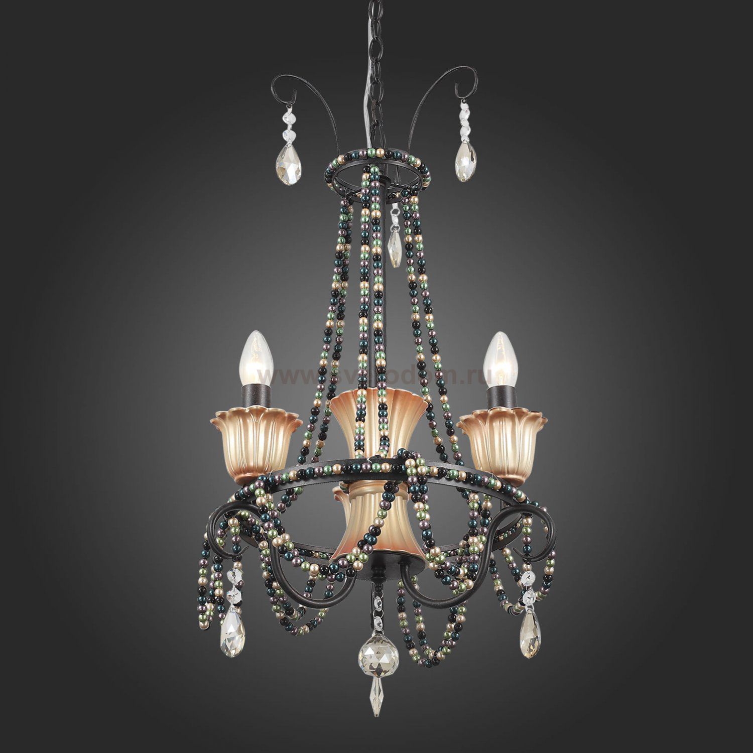 Если Вы настроены купить светильник модели SL15240303, то обратите внимание: Необычная дизайнерская идея, выраженная в сочетании, казалось бы, несочетаемого: готической классики, этнических мотивов и романтической роскоши, воплотилась в моделях коллекции Collana. Эффектные и запоминающиеся люстры предназначены для просторных помещений с высокими потолками. Металлические основания окрашены чёрной матовой краской. Плафоны, обрамляющие лампы, также выполнены из металла и расписаны вручную золотом. Гирлянды керамических бусин и хрустальные подвесы завершают яркий и необычный образ моделей Collana.