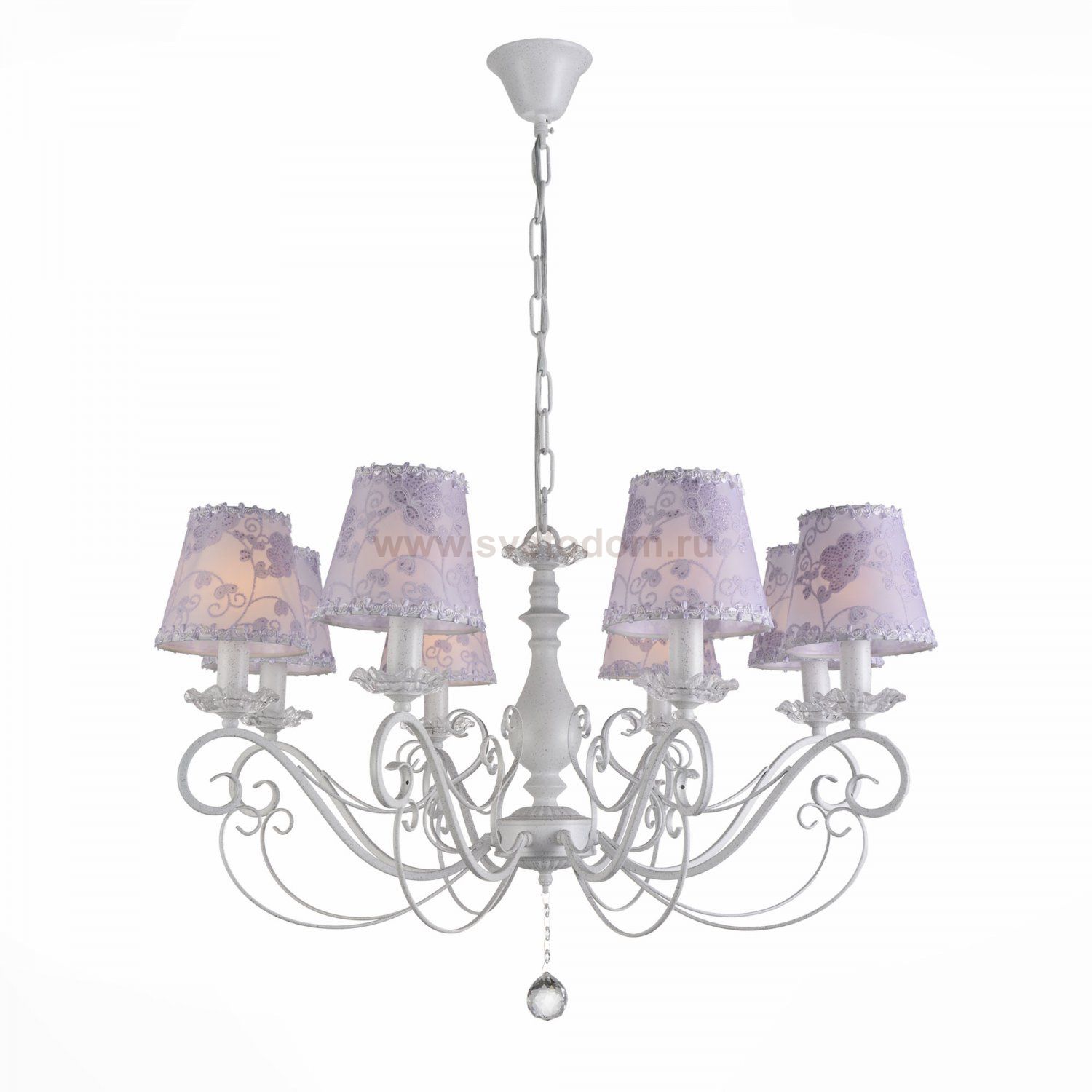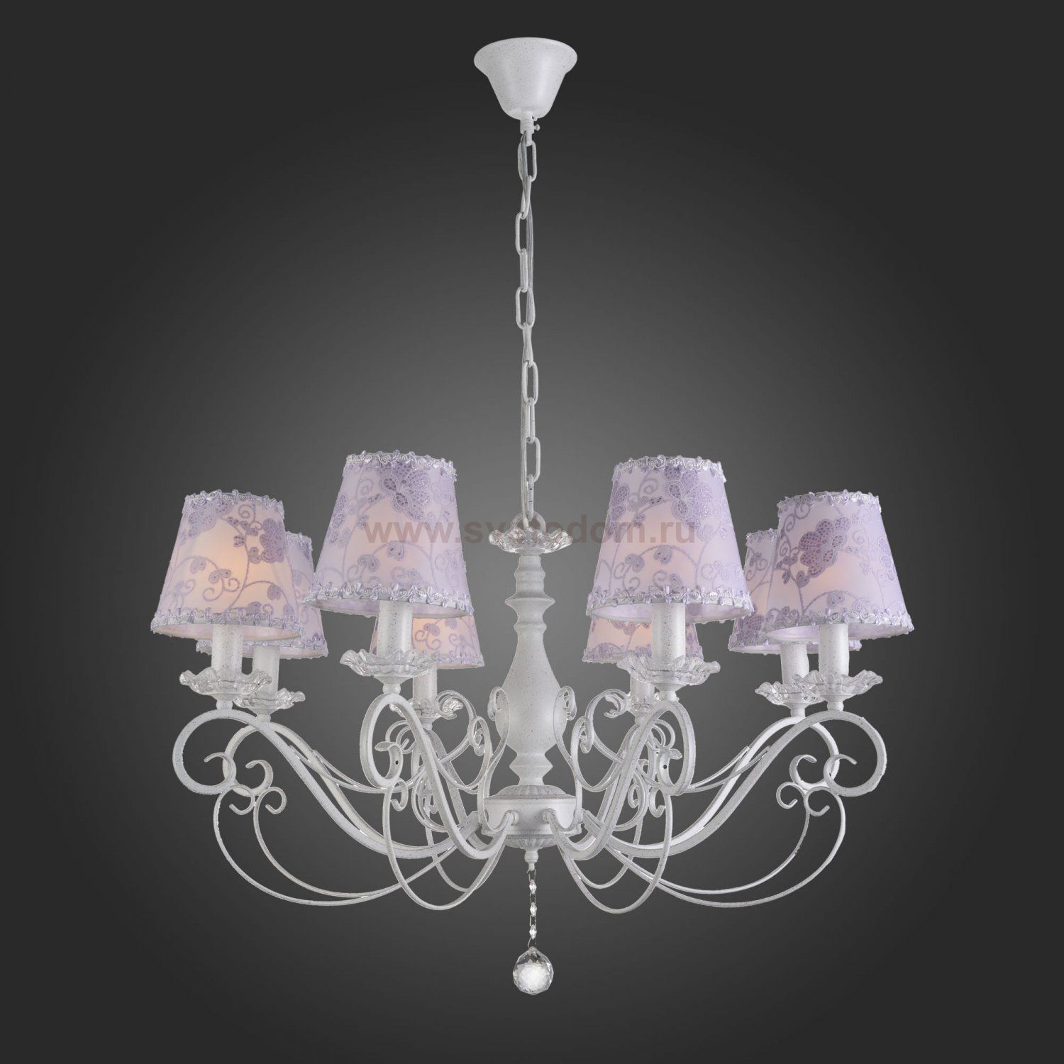Если Вы настроены купить светильник модели SL16050308, то обратите внимание: Элегантные и нежные модели коллекции Incanto гармонично впишутся в интерьер спальни, гостиной, дамского кабинета, подчеркнут шарм стилей арт- деко, классицизма, прованса, неоклассики. Плавно изогнутые детали металлического основания окрашены в белый цвет гранита и эффектно украшены хрустальным подвесом в форме шара. Прекрасным продолжением художественной задумки дизайнеров служат текстильные абажуры сиреневого отенка.С приходом темного времени суток люстры Incanto наполнят пространство атмосферой уюта и романтизма.