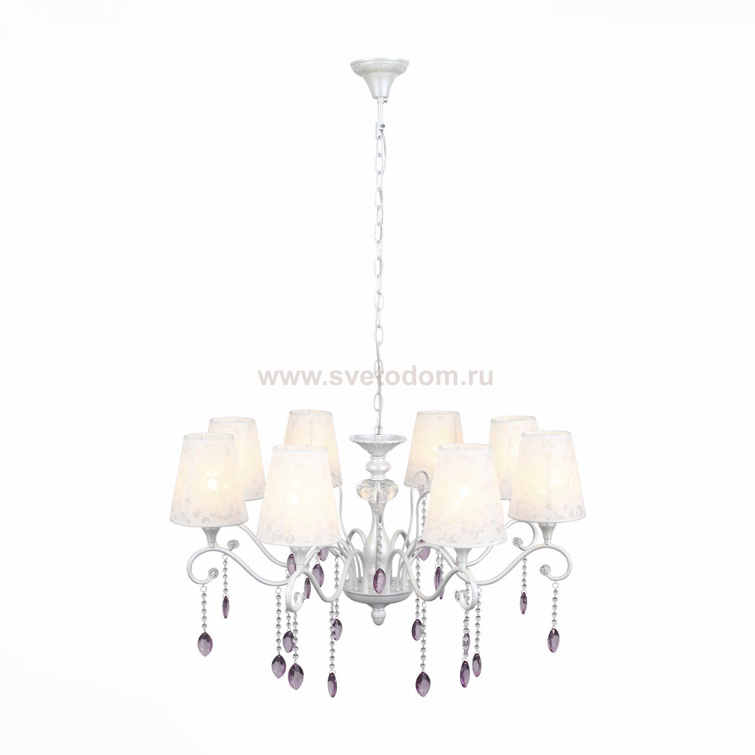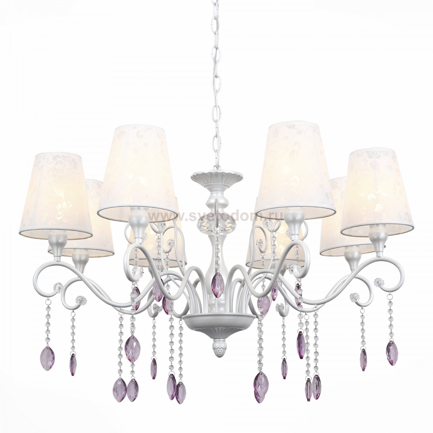 Если Вы настроены купить светильник модели SL16450308, то обратите внимание: Вечная классика с идеальными формами, чёткими линиями- это коллекция светильников Jeta ,- достойный вариант для освещения загородного дома или квартиры. Игривые завитки металлического основания, окрашенного в белый цвет, создают атмосферу романтизма и гармонии. Оригинальность и возможность смены образа светильнику добавляют 2 набора подвесок, идущих в комлекте с люстрами и бра. Можно менять настроение и весь облик люстры, самостоятельно заменяя подвески из прозрачного хрусталя на бледно розовые. Плафоны классической формы способствуют тому, что свет мягким, направленным потоком падает вниз, отражаясь и преломляясь на поверхности хрустальных кристаллов, играя бликами и тенями.